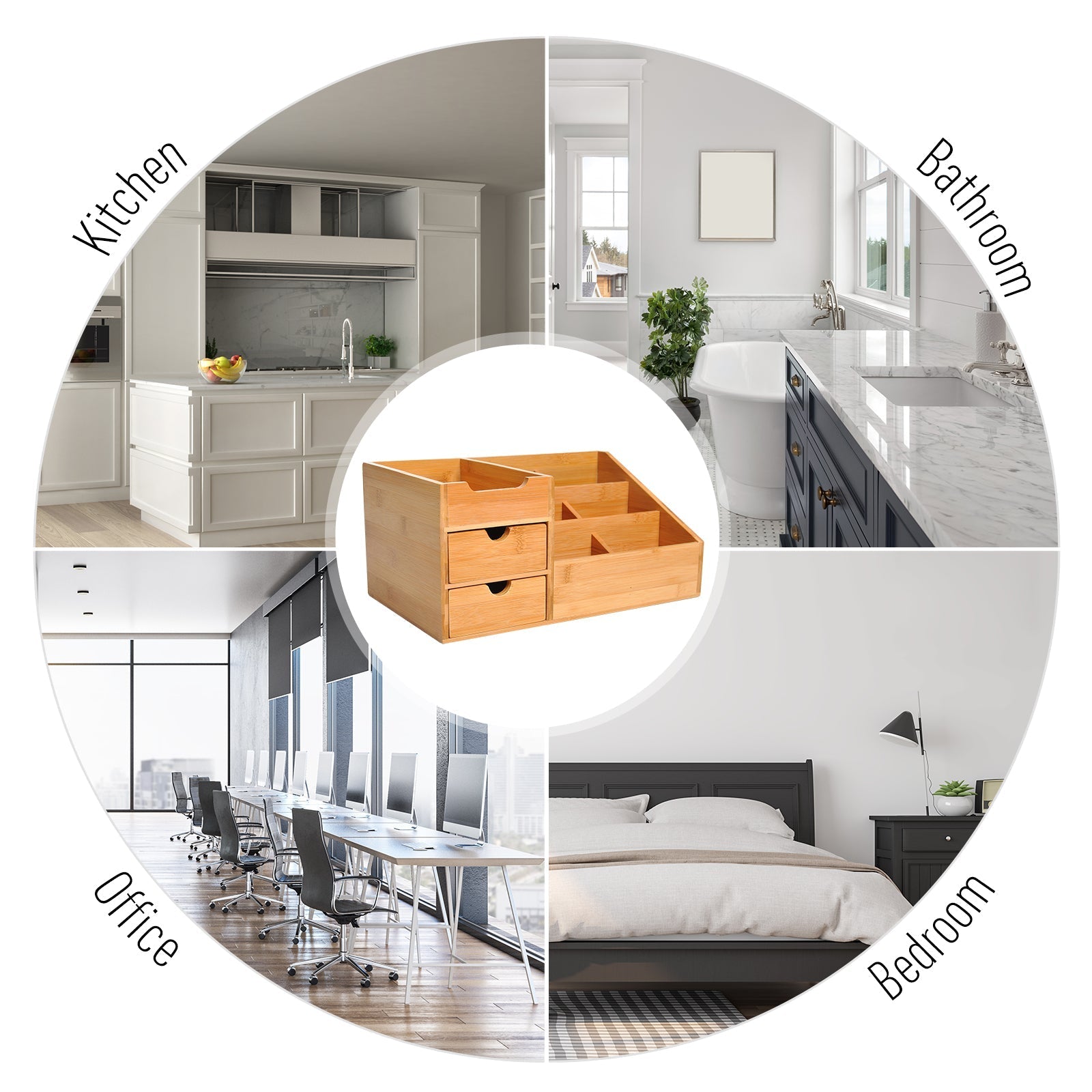 Homcom Organiser Holder Multi-Function Storage Caddy Drawers Home Office Stationary Supplies 7 Storage Compartments And 2 Drawers Natural Wood