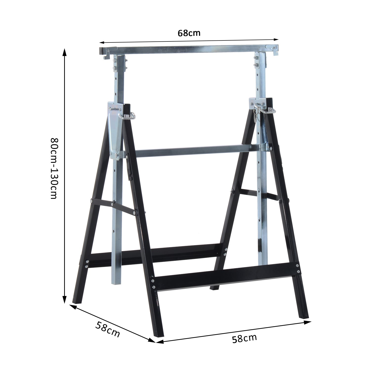 Make light work of your home/work DIY tasks with this saw horse set from HOMCOM. Using steel for the frame, each piece is strong and reliable, supporting up to 200kg collectively for you to get on with your tasks with ease. The height can be adjusted between 80cm and 130cm - allowing you to set to a level correct and safe for you. The foldable design equals easy storage and carrying around. Your new DIY best friend.