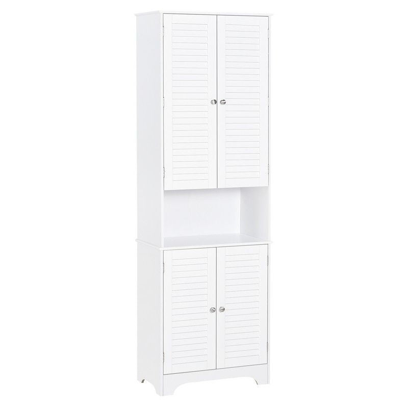 Homcom Tall Freestanding Bathroom Cabinet Retro Shutters W/ 3 Compartments Shelves Elevated Base Narrow Organiser White 60L X 30W X 182.5H cm