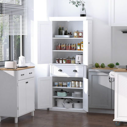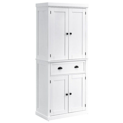 There's no such thing as enough kitchen storage. Ready to make your decision to maximize their storage with the free standing kitchen units? Made of engineered wood to ensure reinforced strength and stability, this 184cm tall storage cabinet showcasing a top a bottom cabinet with 3 adjustable shelves, alongside a slide-out drawer in the middle which is ideal for storing cutlery. Let modern-looking beauty take centre stage in your home with this kitchen dresser from Homcom.
