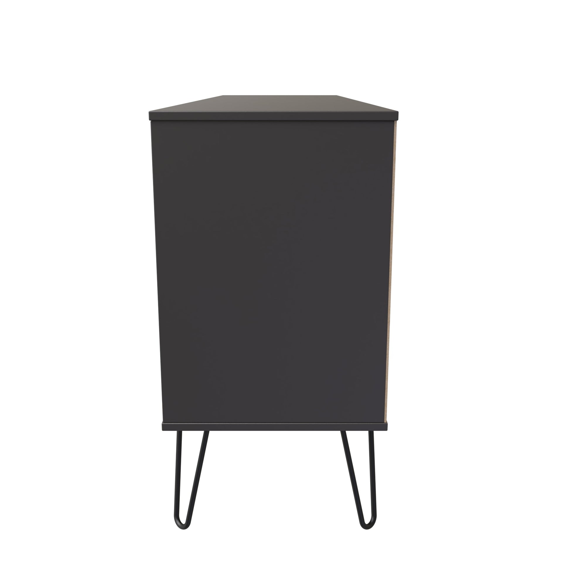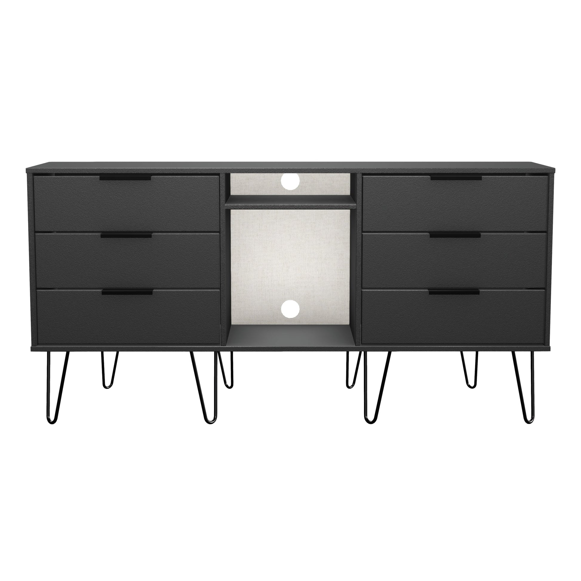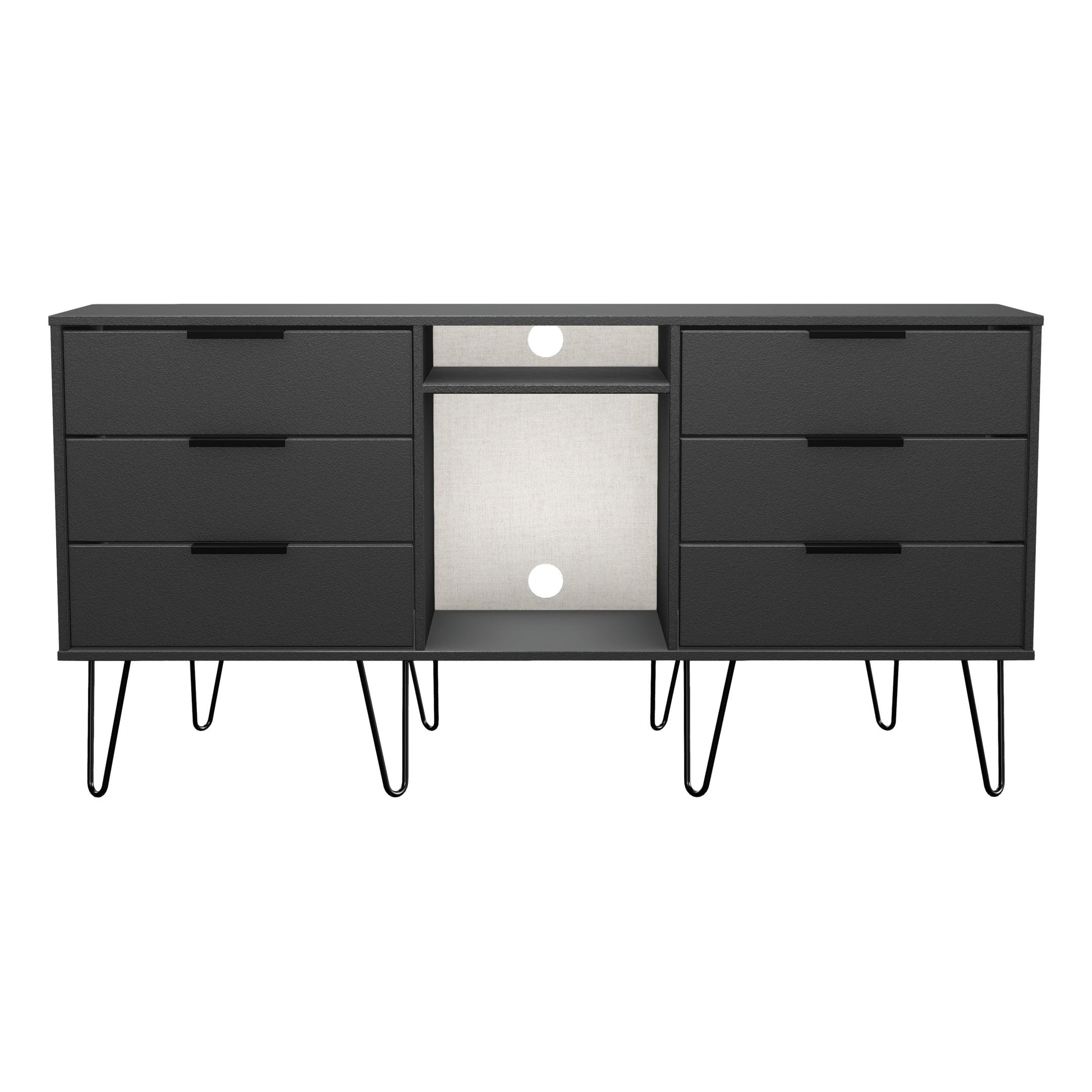 Hong Kong C Large Sideboard Black 2 Shelves 6 Drawers 152cm