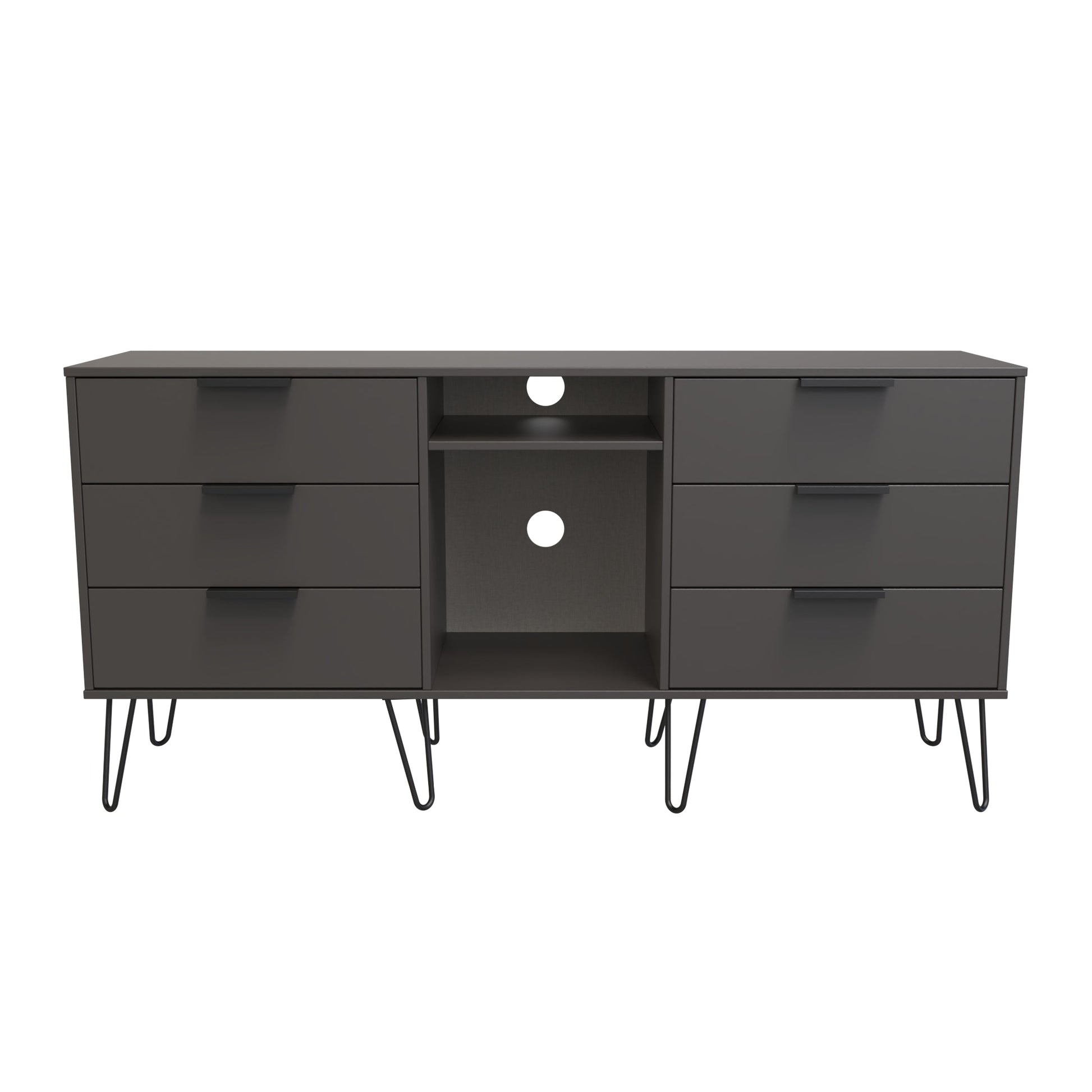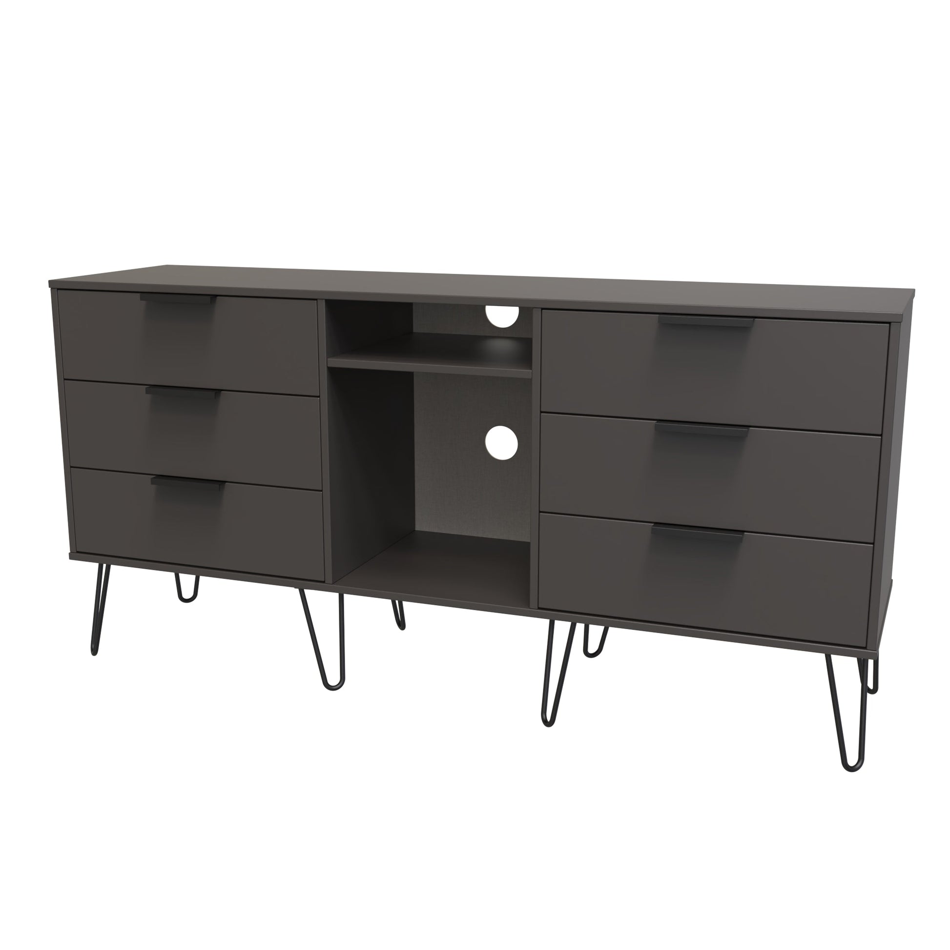 This wide storage unit features 6 storage drawers with a central shelf. Suitable for use as a TV/Media unit or sideboard. Choosing between subtle neutral and elegant earthy tones, you'll be amazed at how well this collection can enhance a space. You can be certain it will be engaging, with a sophisticated and durable finish. The extensive colour options are complimented with a variety of different leg options. All our furniture is made to order in the United Kingdom, to the highest quality. It is delivered within 10 working days direct to your location of choice by one of our two man delivery teams, and comes fully assembled (although legs may be removed to prevent damage in transit). Part of the Hong Kong C Collection.