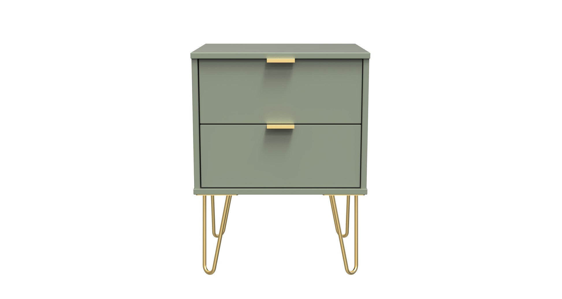 This 2 drawer bedside cabinet is practical and stylish. Perfect for any bedside or as a free standing storage unit. Modern and stylish, this striking range is available in a range of durable scratch resistant colour or natural wood finishes. With pull handles on all doors and drawers, with gold hairpin metal legs. Comes with Soft Close Drawers. All our furniture is made to order in the United Kingdom, to the highest quality. It is delivered within 10 working days direct to your location of choice by one of our two man delivery teams, and comes fully assembled (although legs may be removed to prevent damage in transit). Part of the Hong Kong F Collection.