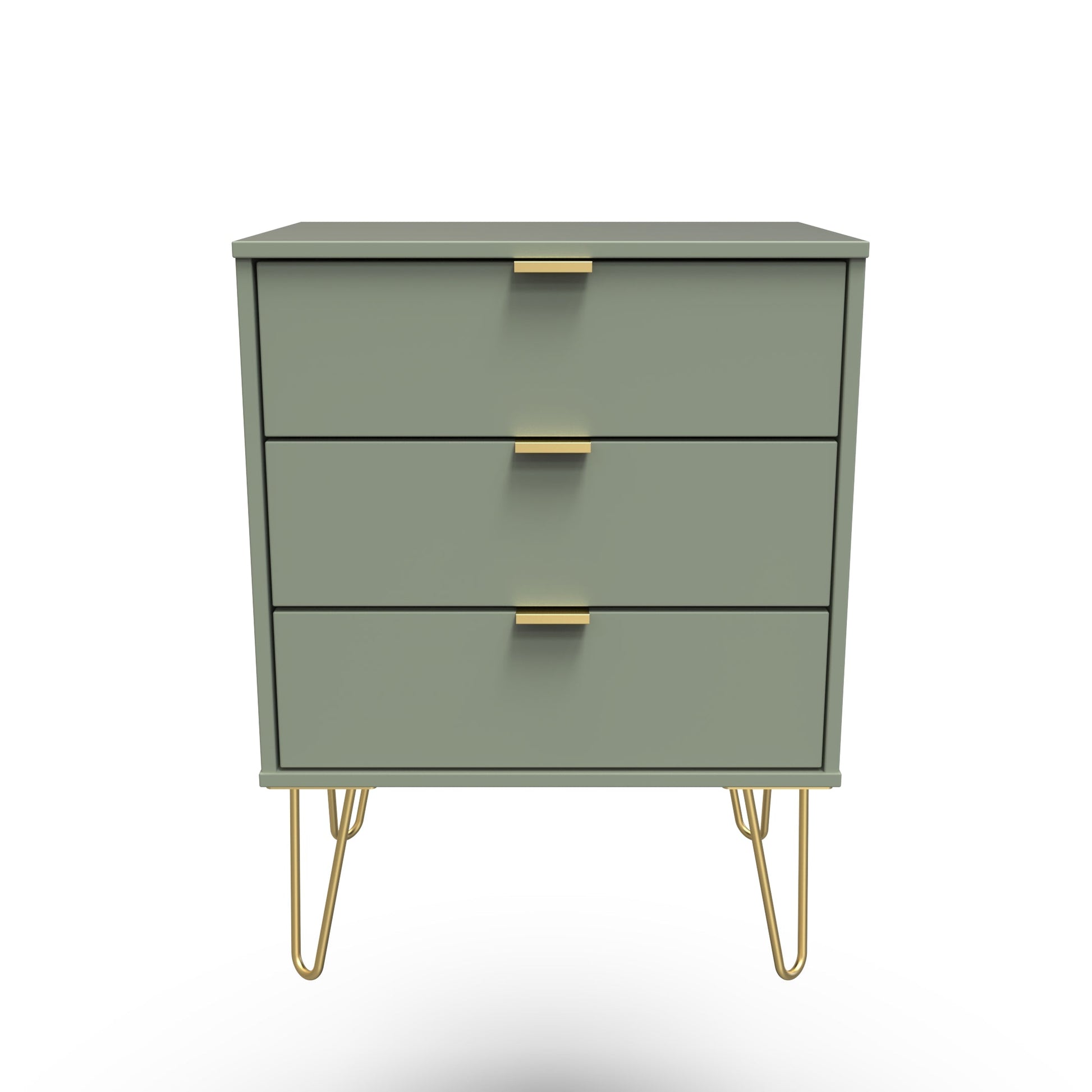 This 3 drawer bedside cabinet is wider than normal for added practicality. Perfect for any bedside or as a free standing storage unit. Modern and stylish, this striking range is available in a range of durable scratch resistant colour or natural wood finishes. With pull handles on all doors and drawers, with gold hairpin metal legs. Comes with Soft Close Drawers. All our furniture is made to order in the United Kingdom, to the highest quality. It is delivered within 10 working days direct to your location of choice by one of our two man delivery teams, and comes fully assembled (although legs may be removed to prevent damage in transit). Part of the Hong Kong F Collection.