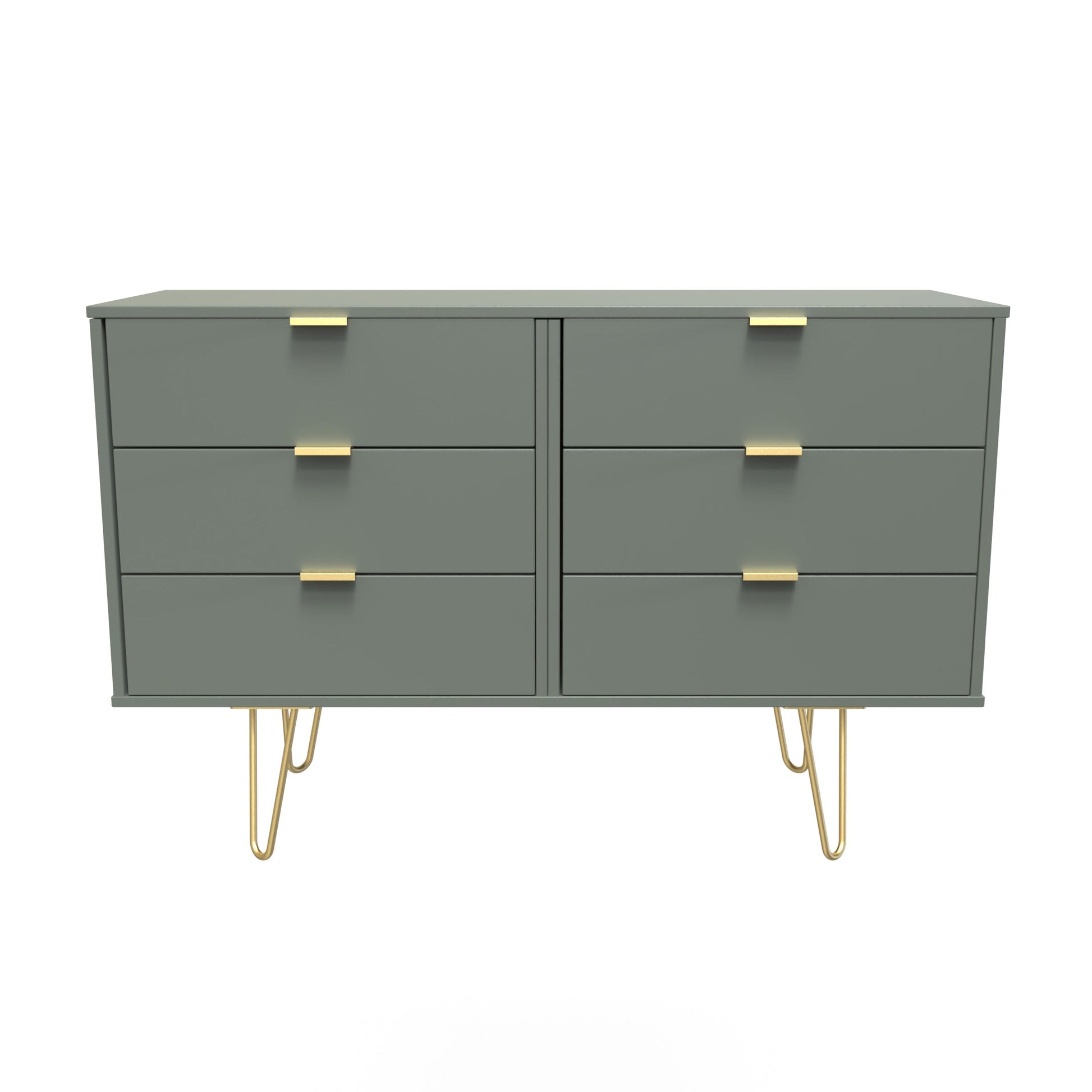 This double width 6 drawer chest of drawers is practical and stylish. Perfect for any home as a free standing storage unit. Modern and stylish, this striking range is available in a range of durable scratch resistant colour or natural wood finishes. With pull handles on all doors and drawers, with gold hairpin metal legs. Comes with Soft Close Drawers. All our furniture is made to order in the United Kingdom, to the highest quality. It is delivered within 10 working days direct to your location of choice by one of our two man delivery teams, and comes fully assembled (although legs may be removed to prevent damage in transit). Part of the Hong Kong F Collection.