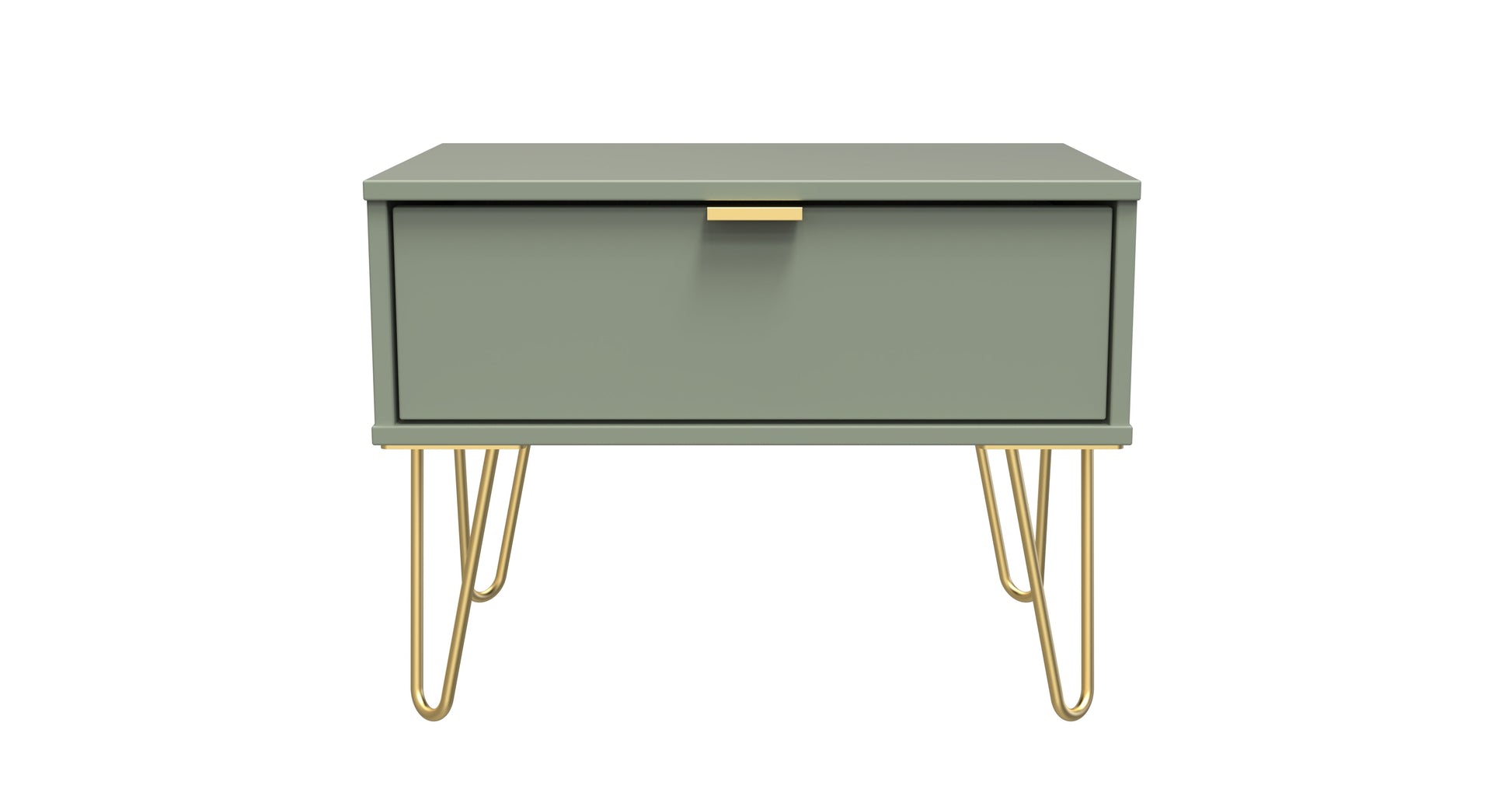 This single drawer bedside cabinet is wider than normal for added practicality. Perfect for any bedside or as a free standing storage unit. Modern and stylish, this striking range is available in a range of durable scratch resistant colour or natural wood finishes. With pull handles on all doors and drawers, with gold hairpin metal legs. Comes with Soft Close Drawers. All our furniture is made to order in the United Kingdom, to the highest quality. It is delivered within 10 working days direct to your location of choice by one of our two man delivery teams, and comes fully assembled (although legs may be removed to prevent damage in transit). Part of the Hong Kong F Collection.