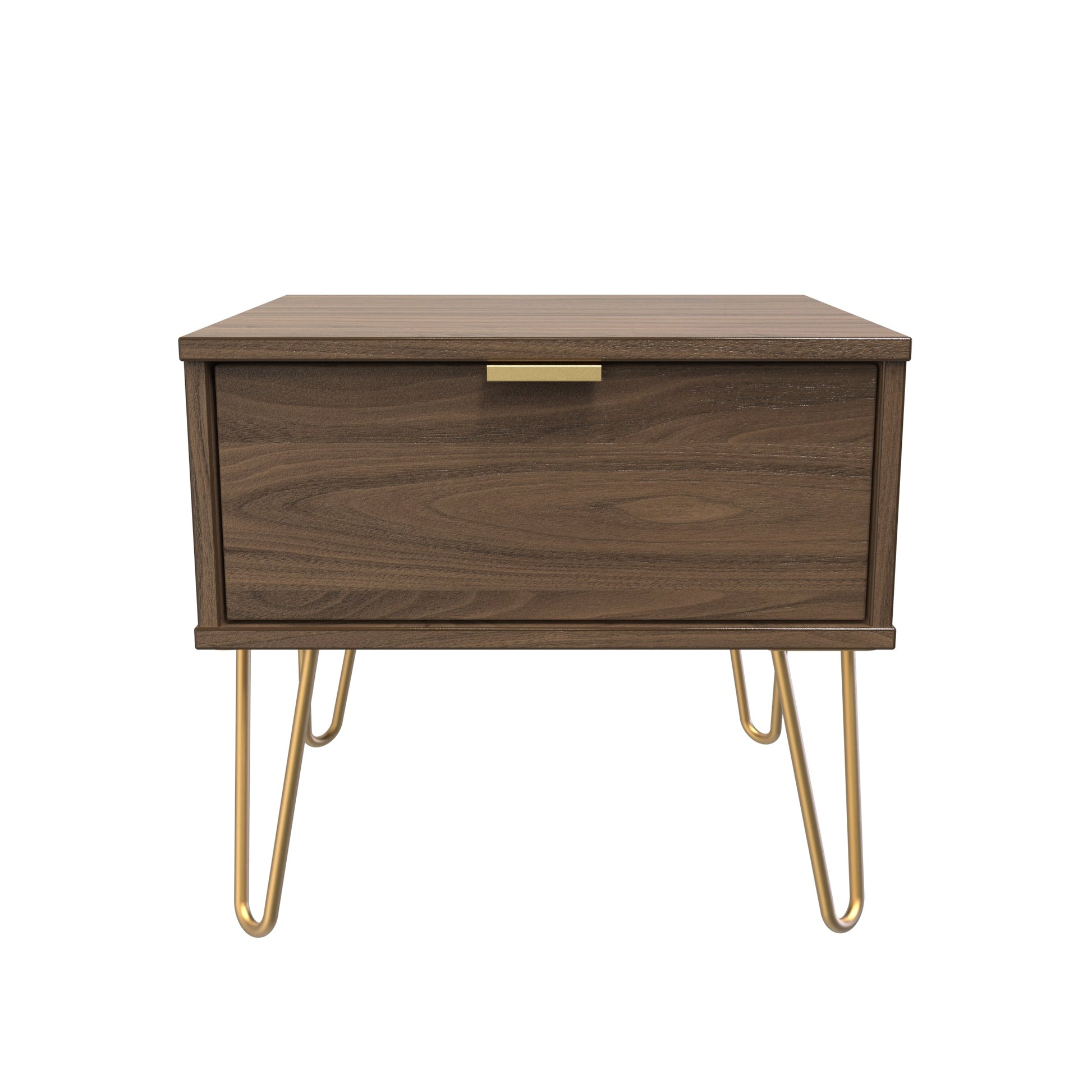 This single drawer bedside cabinet is wider than normal for added practicality. Perfect for any bedside or as a free standing storage unit. Modern and stylish, this striking range is available in a range of durable scratch resistant colour or natural wood finishes. With pull handles on all doors and drawers, with gold hairpin metal legs. Comes with Soft Close Drawers. All our furniture is made to order in the United Kingdom, to the highest quality. It is delivered within 10 working days direct to your location of choice by one of our two man delivery teams, and comes fully assembled (although legs may be removed to prevent damage in transit). Part of the Hong Kong F Collection.