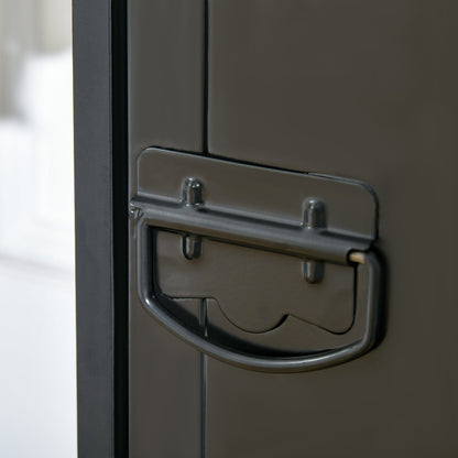 - Sturdy particle board frame, with a metal door for extra strength and protection