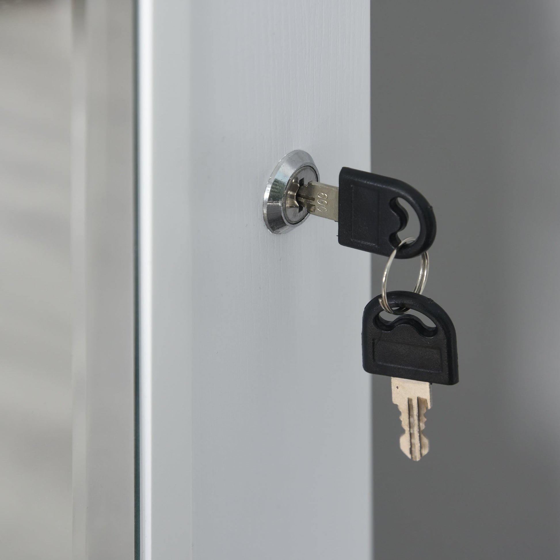 - Can be locked for security when you're not around, comes with two keys - Magnetic closing on the mirror door for smooth opening and closing