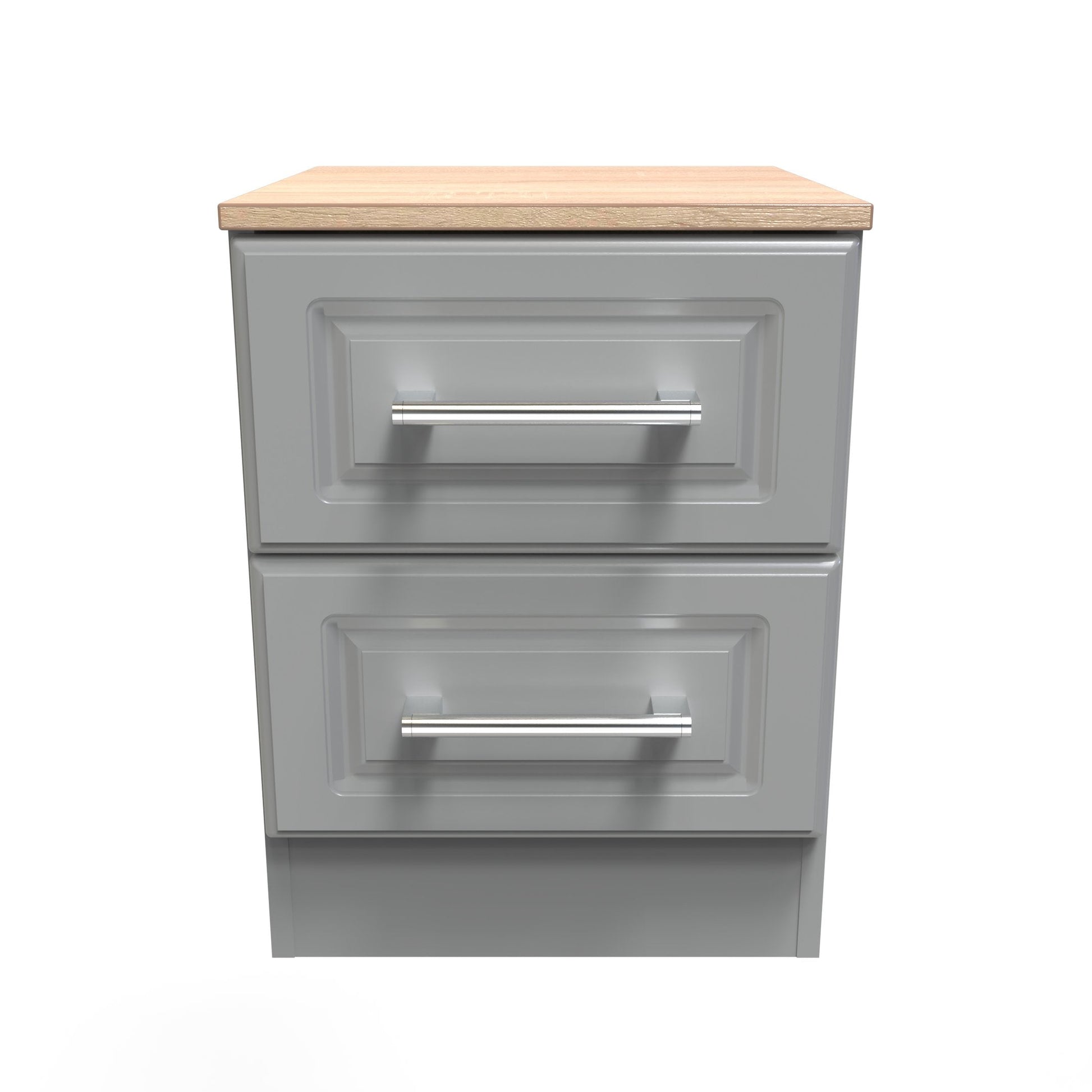 Kent Bedside Table Grey & Oak 2 Drawers 51cm
