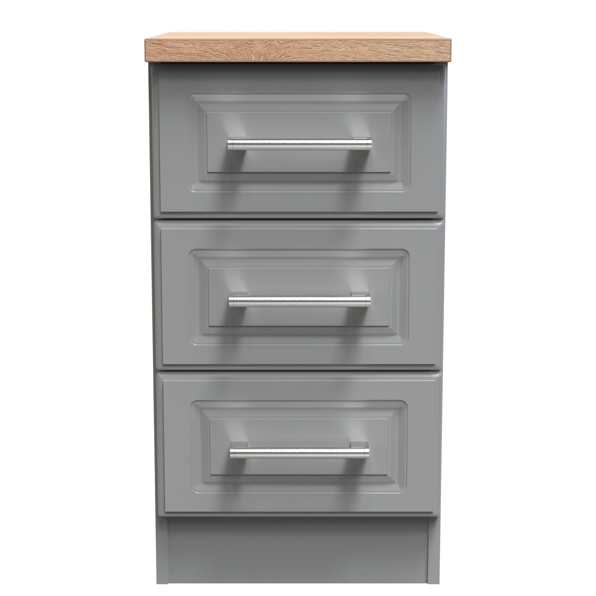 Kent Bedside Table Grey & Oak 3 Drawers 70cm