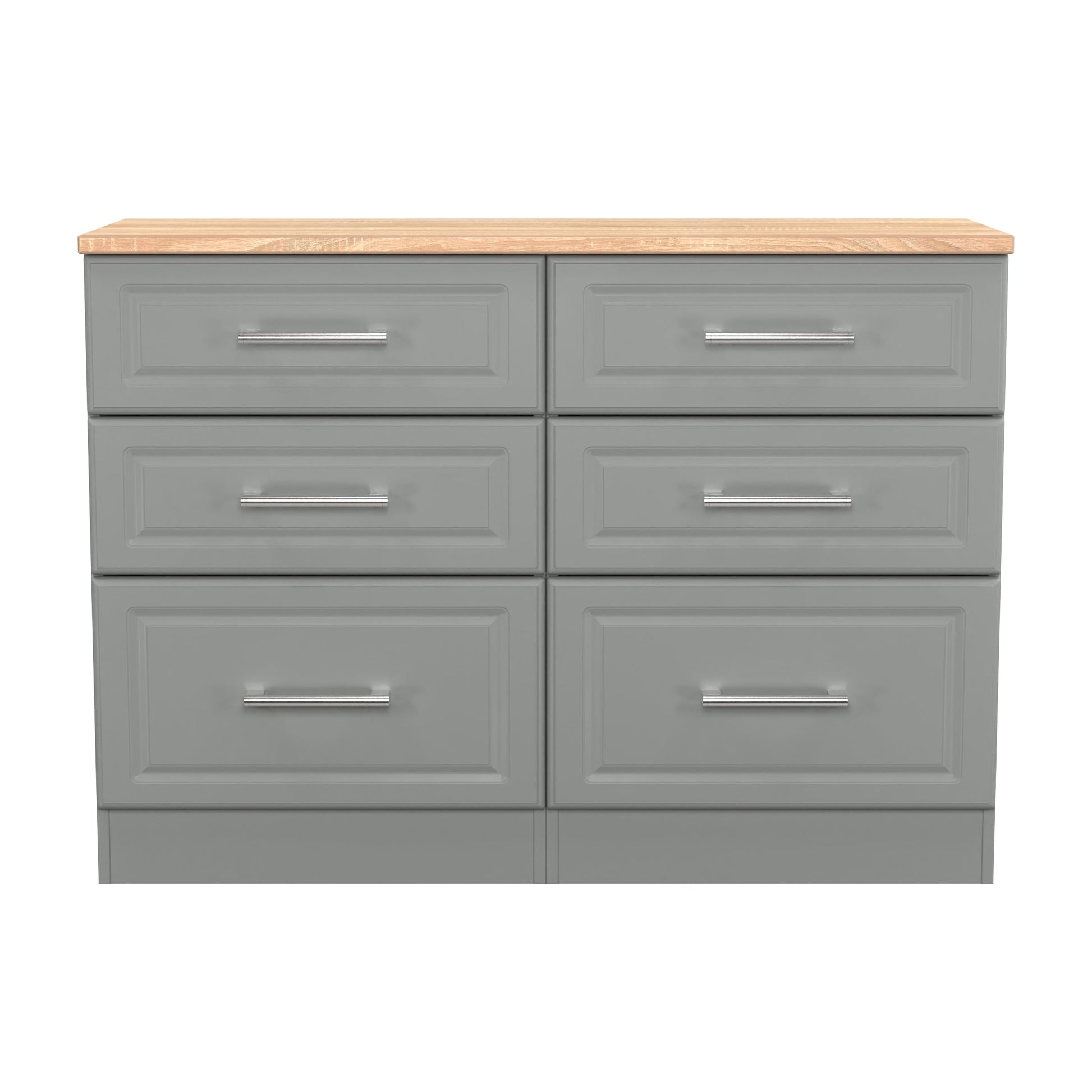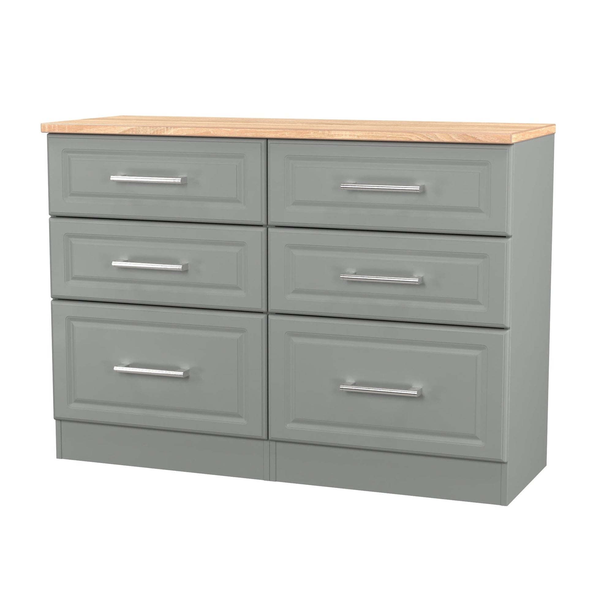Kent Large Chest of Drawers Grey & Oak 6 Drawers 110cm