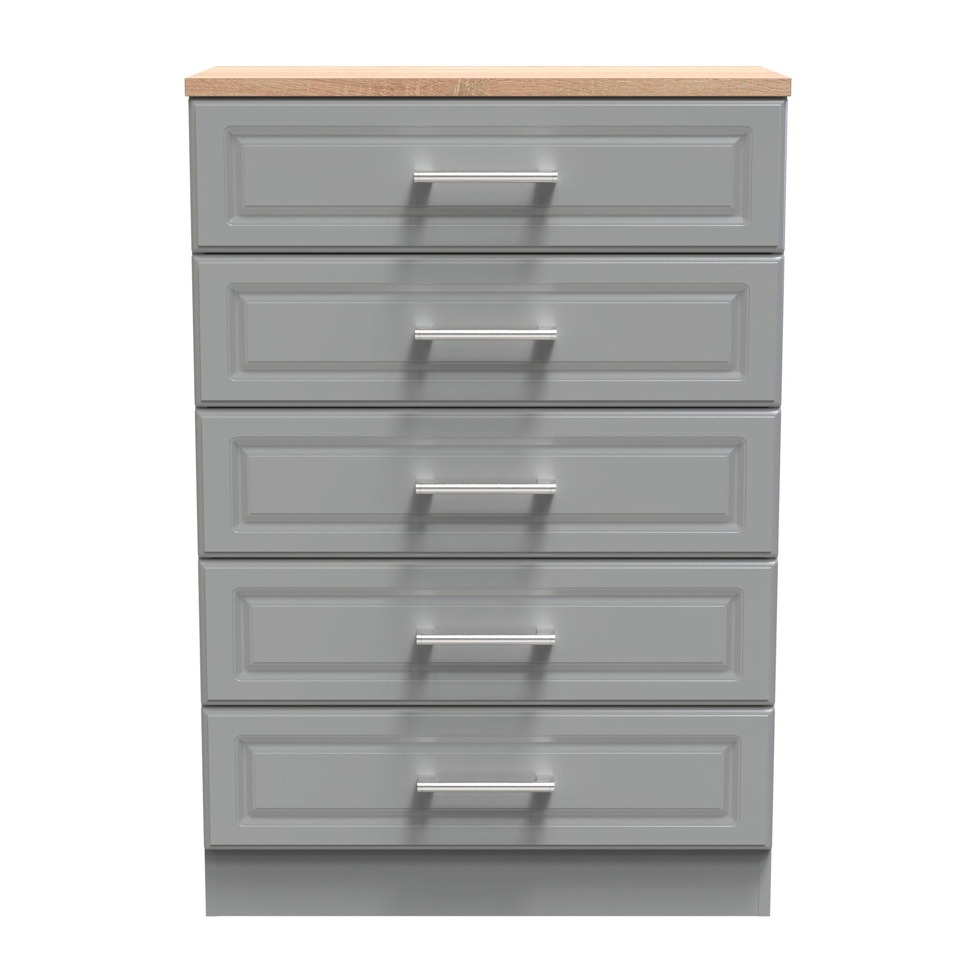 Kent Tall Chest of Drawers Grey & Oak 5 Drawers 108cm