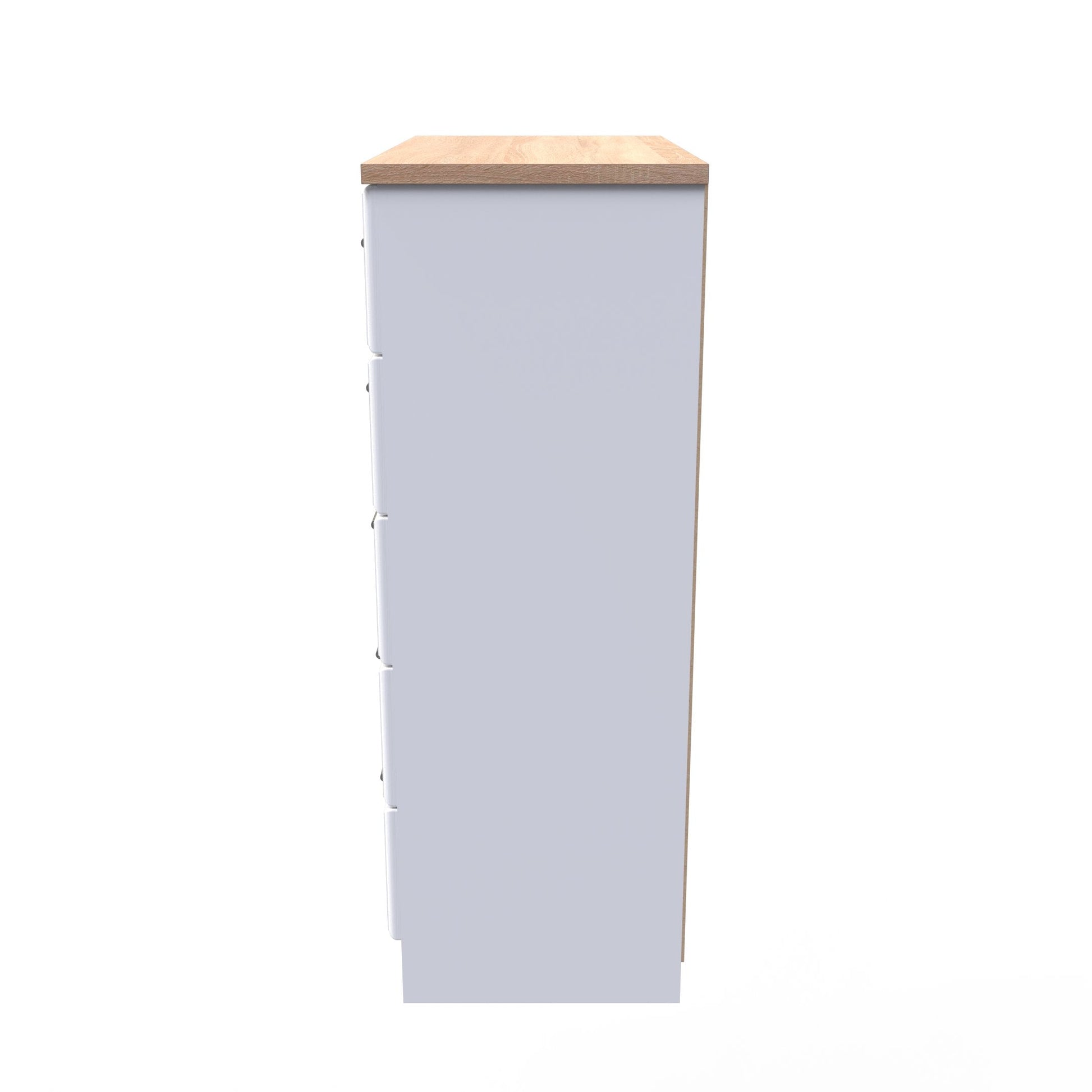 Kent Tall Chest of Drawers White & Oak 5 Drawers 108cm