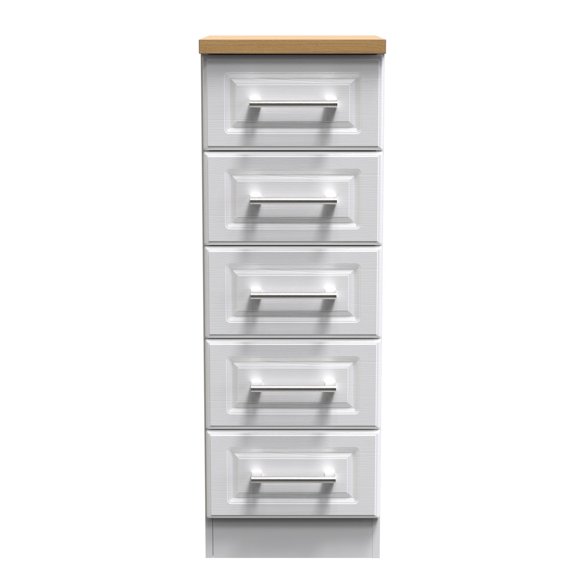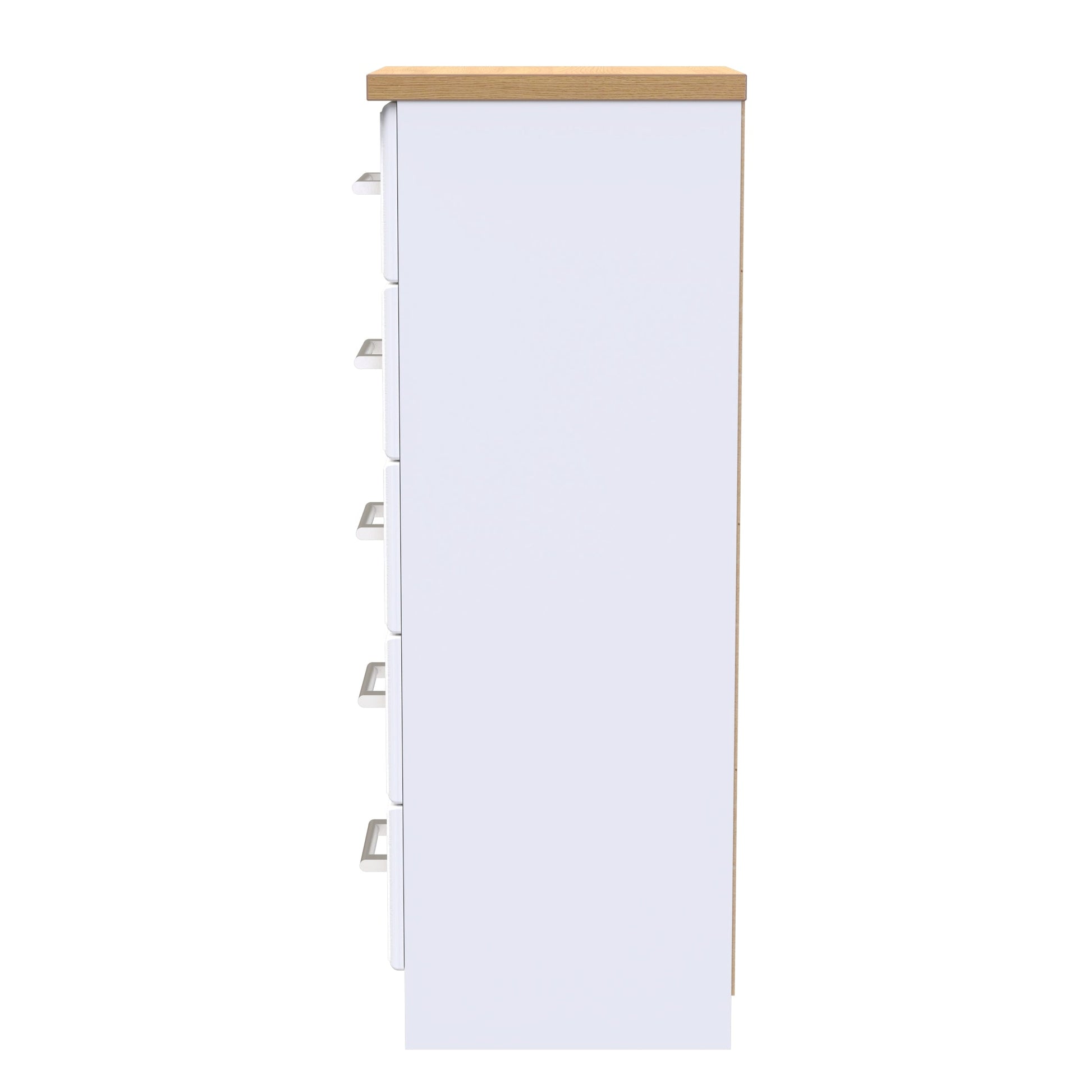 Kent Tall Tallboy White & Oak 5 Drawers 108cm