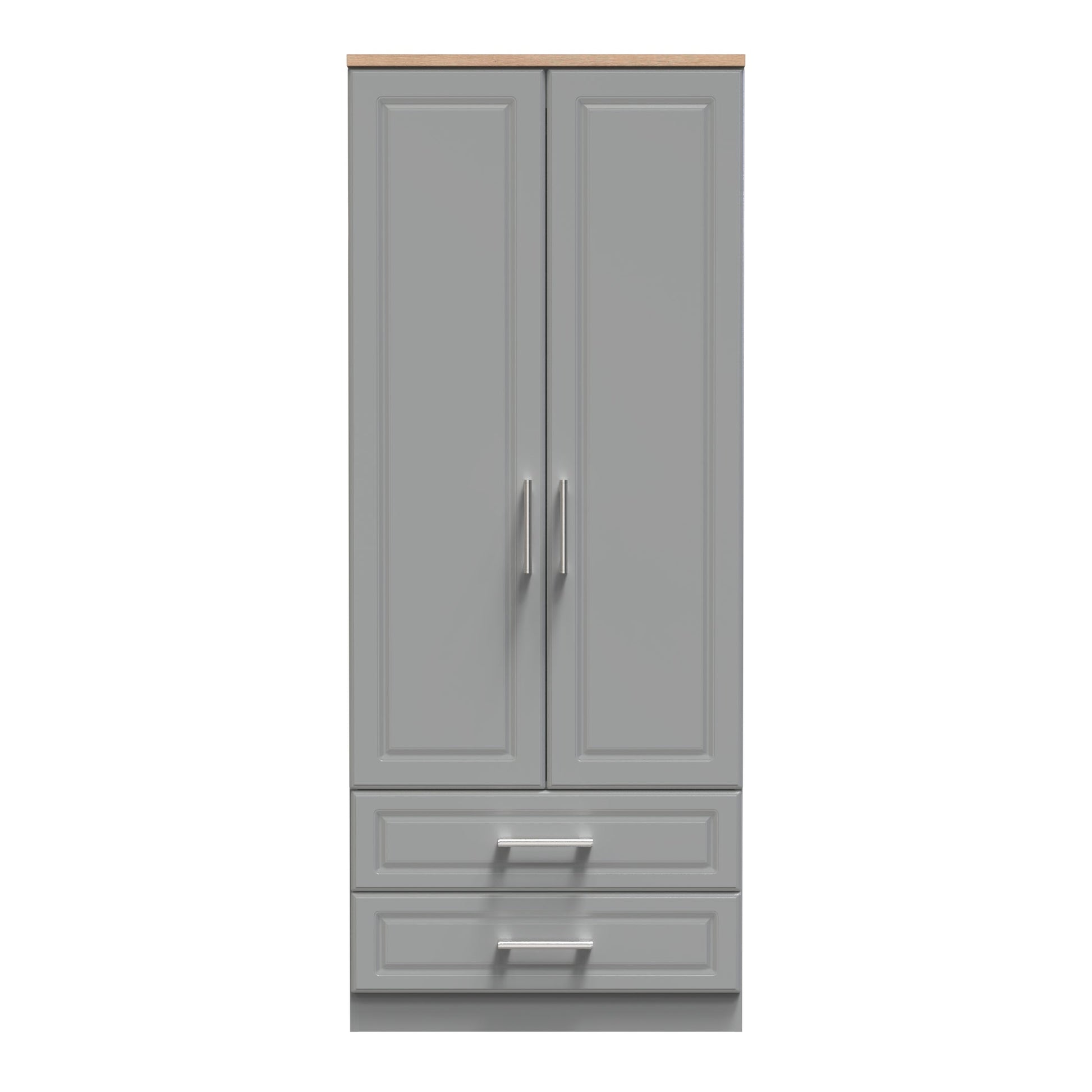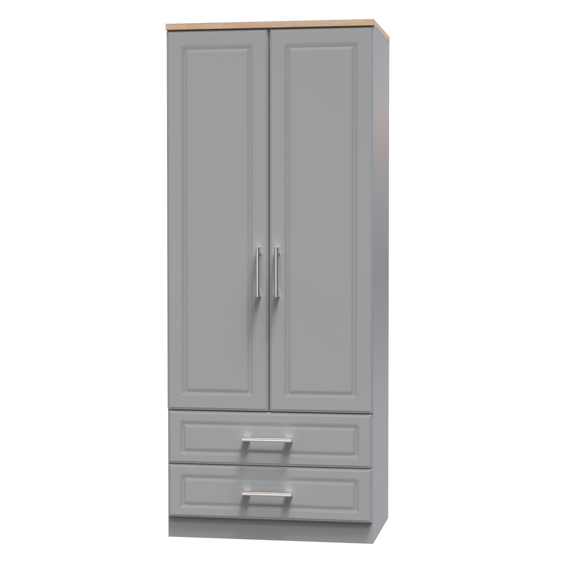 Kent Tall Wardrobe Grey & Oak 2 Doors 2 Drawers 182cm