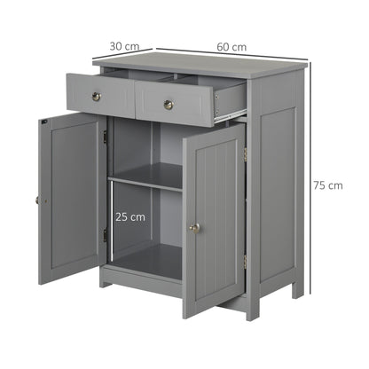 kleankin 75x60cm Freestanding Bathroom Storage Cabinet Unit w/ 2 Drawers Cupboard Adjustable Shelf Metal Handles Traditional Style Grey