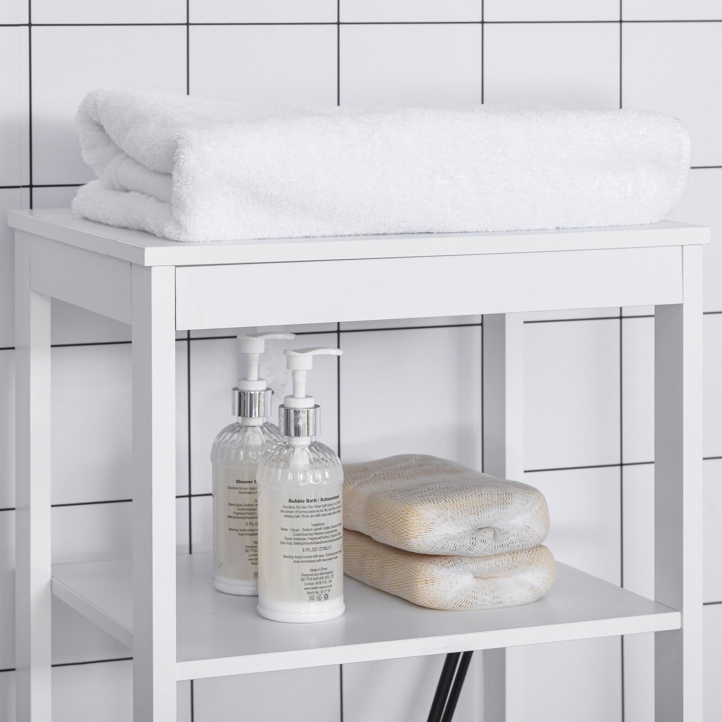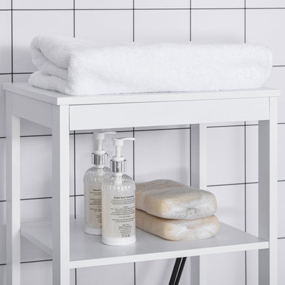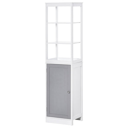 This bathroom cabinet, from kleankin, is designed to fit into small areas thanks to its tall and narrow design. Comes with three top shelves for holding towels and any laundry, with the bottom cupboard offering discreet storage. Cupboard features a shelf for organisation. It’s made from MDF, so it’s durable and sturdy, with the flat base keeping it balanced. Grey and white design is fresh and simple, finished with a polished door knob for a sleek contrast.