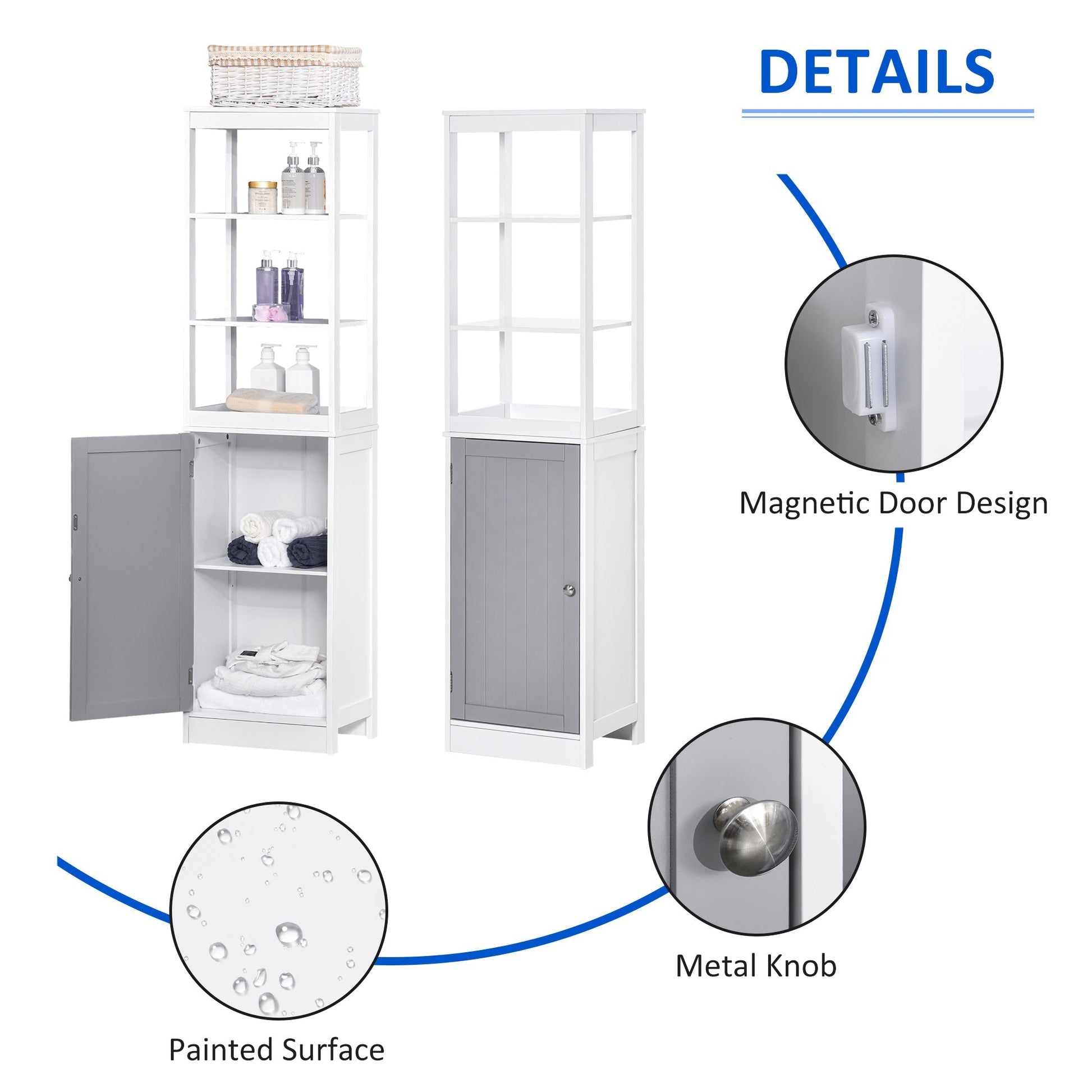 kleankin Tall Bathroom Cabinet Free Standing Slimline Cupboard Tallboy Unit Storage Organiser for Bathroom