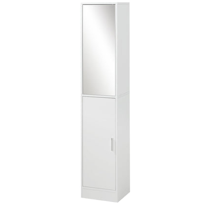 A beautiful and tidy bathroom starts with this slimline cabinet from kleankin. Inside, there are five shelves which offer plenty of storage - separate sections give each family/flat member their own individual space. Two-cupboard design comes with two doors: top is fitted with a mirror so you can get ready, with push-open operation to open/close easily; bottom is fitted with handle. Made from particle board, it's durable and suitable for everyday use, finished with safe anti-tipping straps.