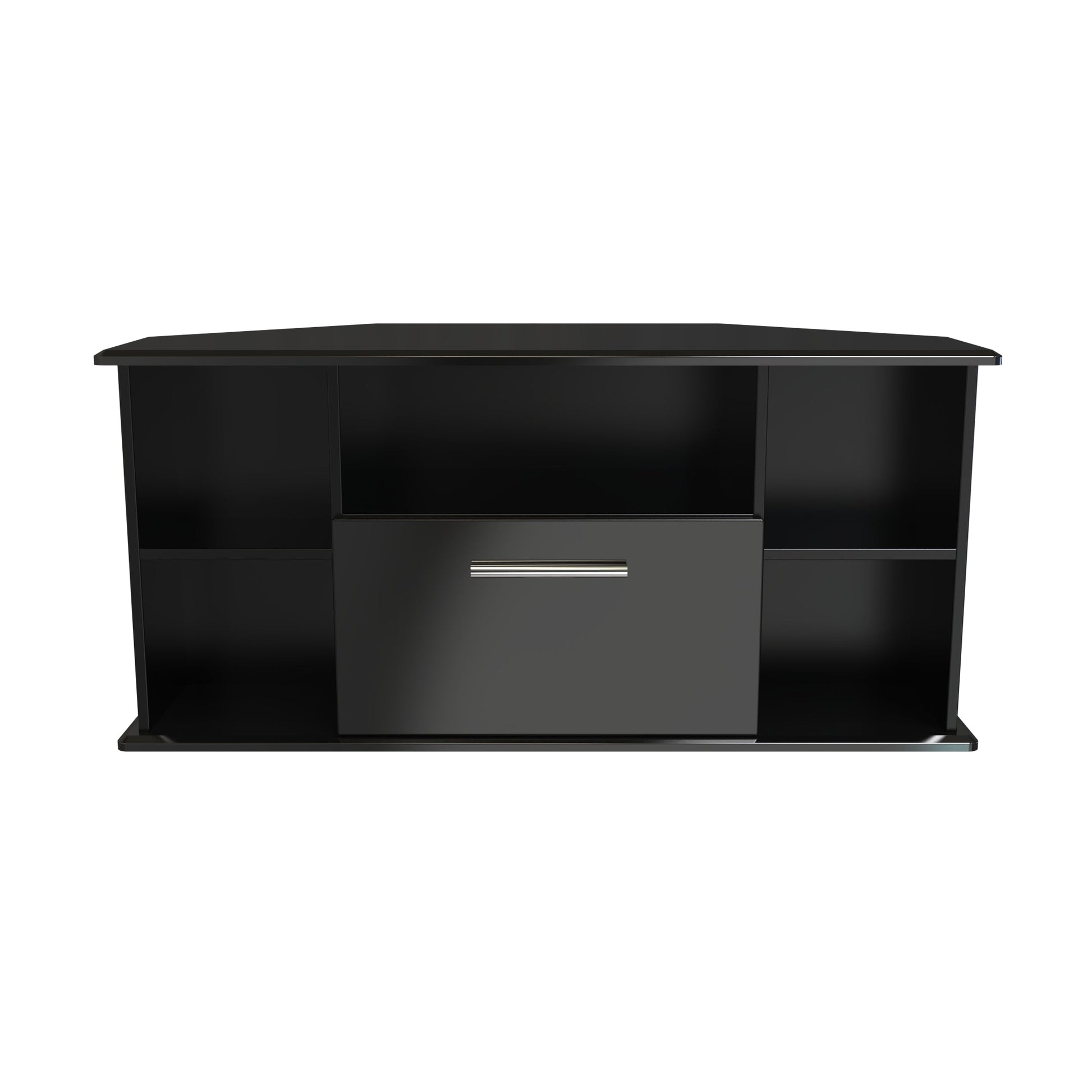 Knightsbridge Corner Corner TV Unit Black 5 Shelves 1 Drawer 112cm