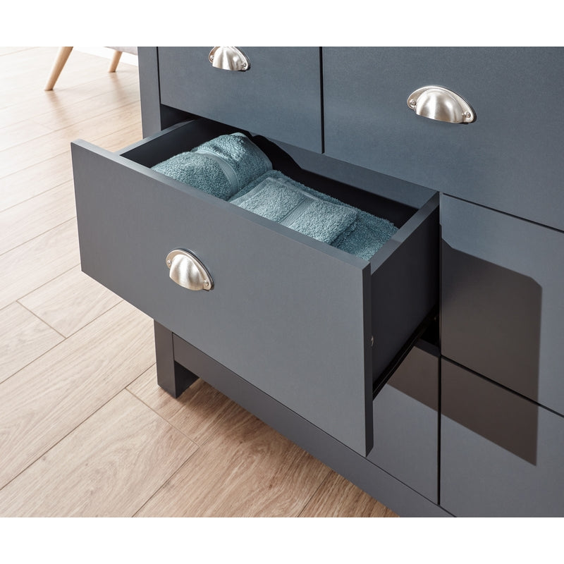 This chest of drawers from GFW provides the perfect blend of quality and value and is ideal for those who admire pleasing aesthetics and versatility for a range of situations. A dependable drawer unit which is expertly made to a time-honoured design, this piece will provide an outstanding enhancement to your sleeping area. In a stylish blue colour that will complement your decor beautifully.