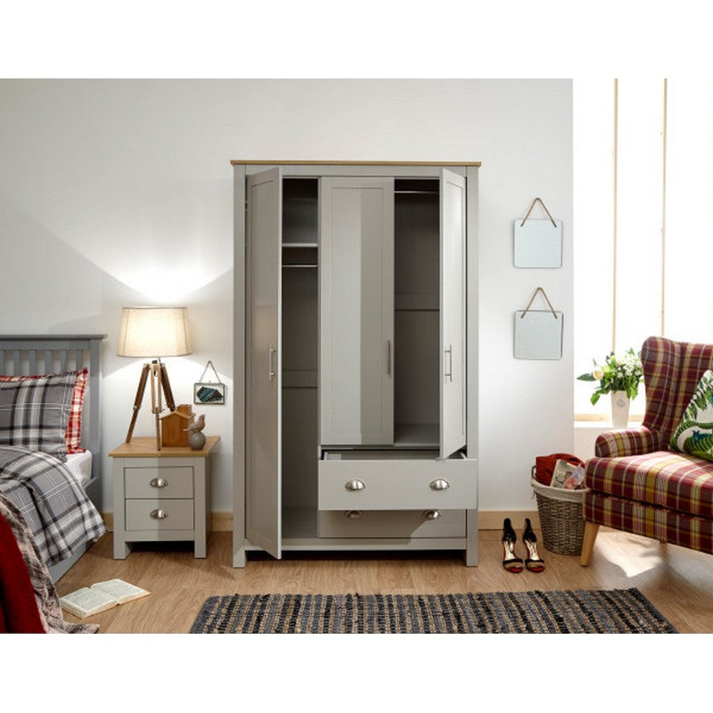 Lancaster Tall Wardrobe Grey 3 Doors 1 Shelf 2 Drawers