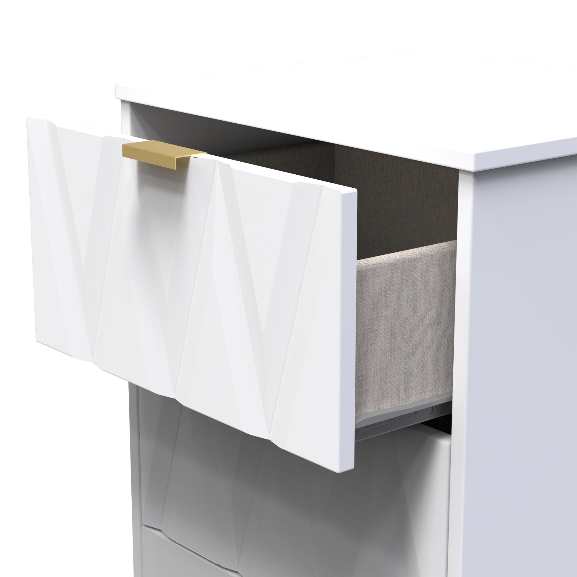 This 2 drawer bedside cabinet is practical and stylish. Perfect for any bedside or as a free standing storage unit. The distinctive front of this striking range combines a variety of colour options, with a choice of handles allowing it to compliment any interior design. Part of the Las Vegas F Collection.