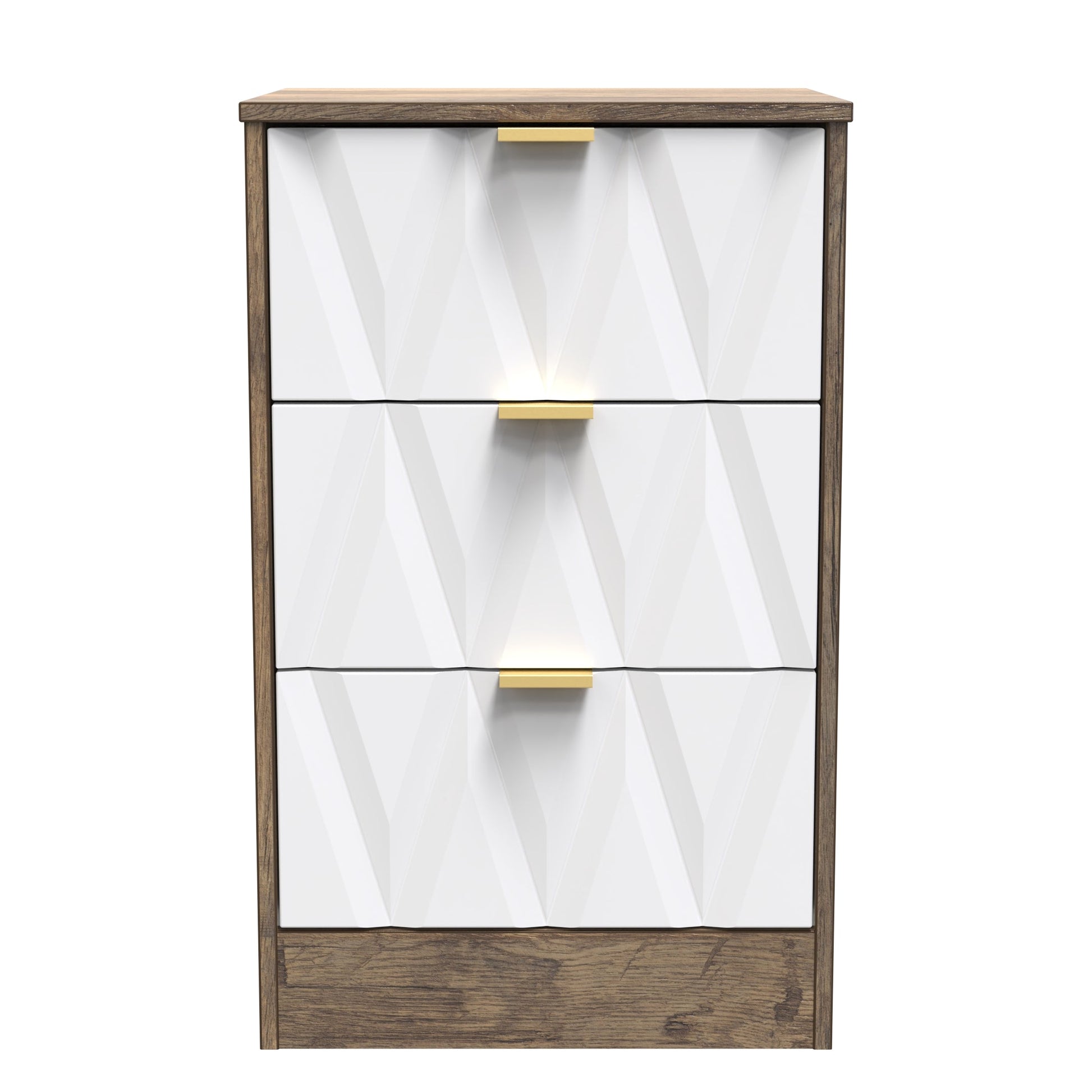 Las Vegas F Bedside Table White & Oak 3 Drawers 73cm