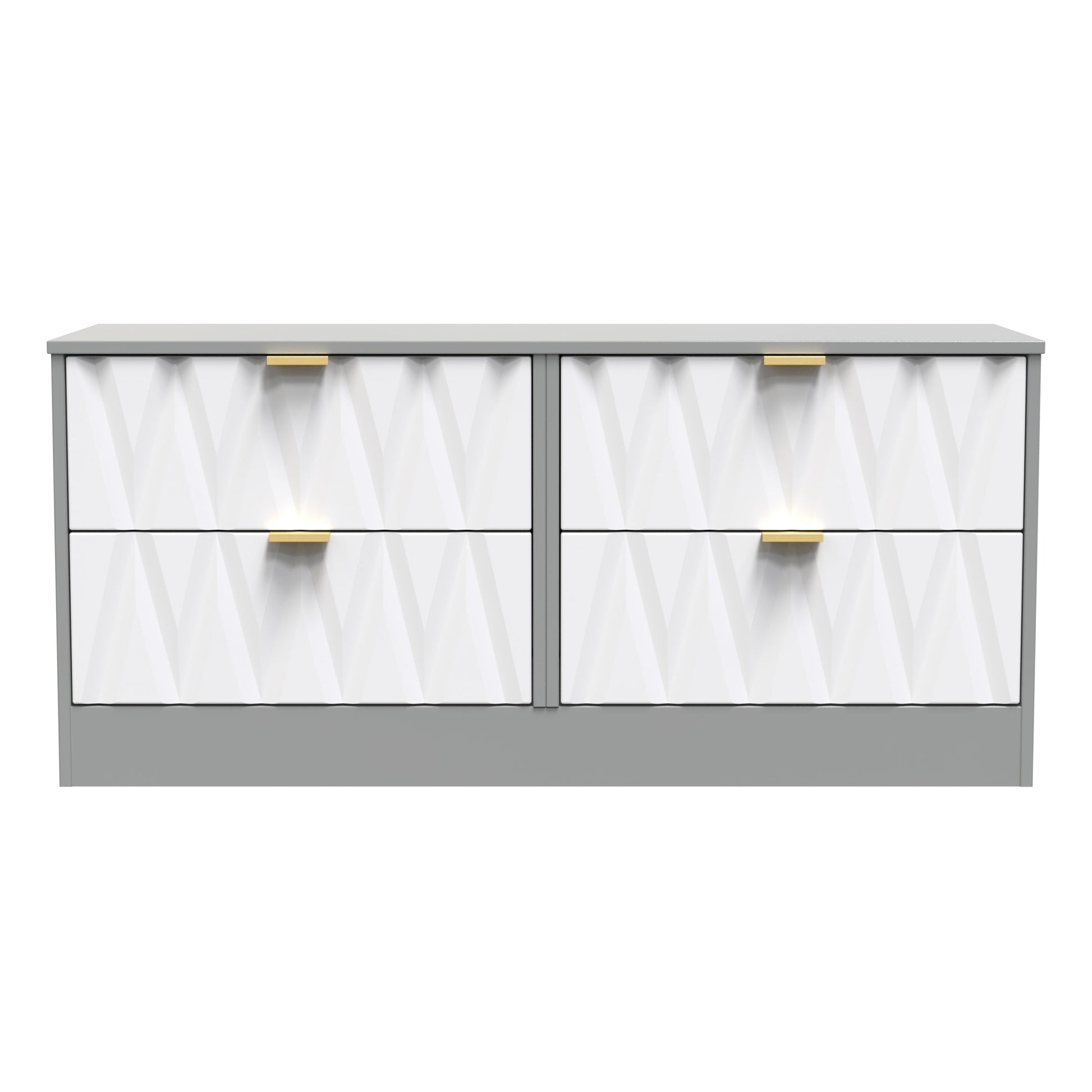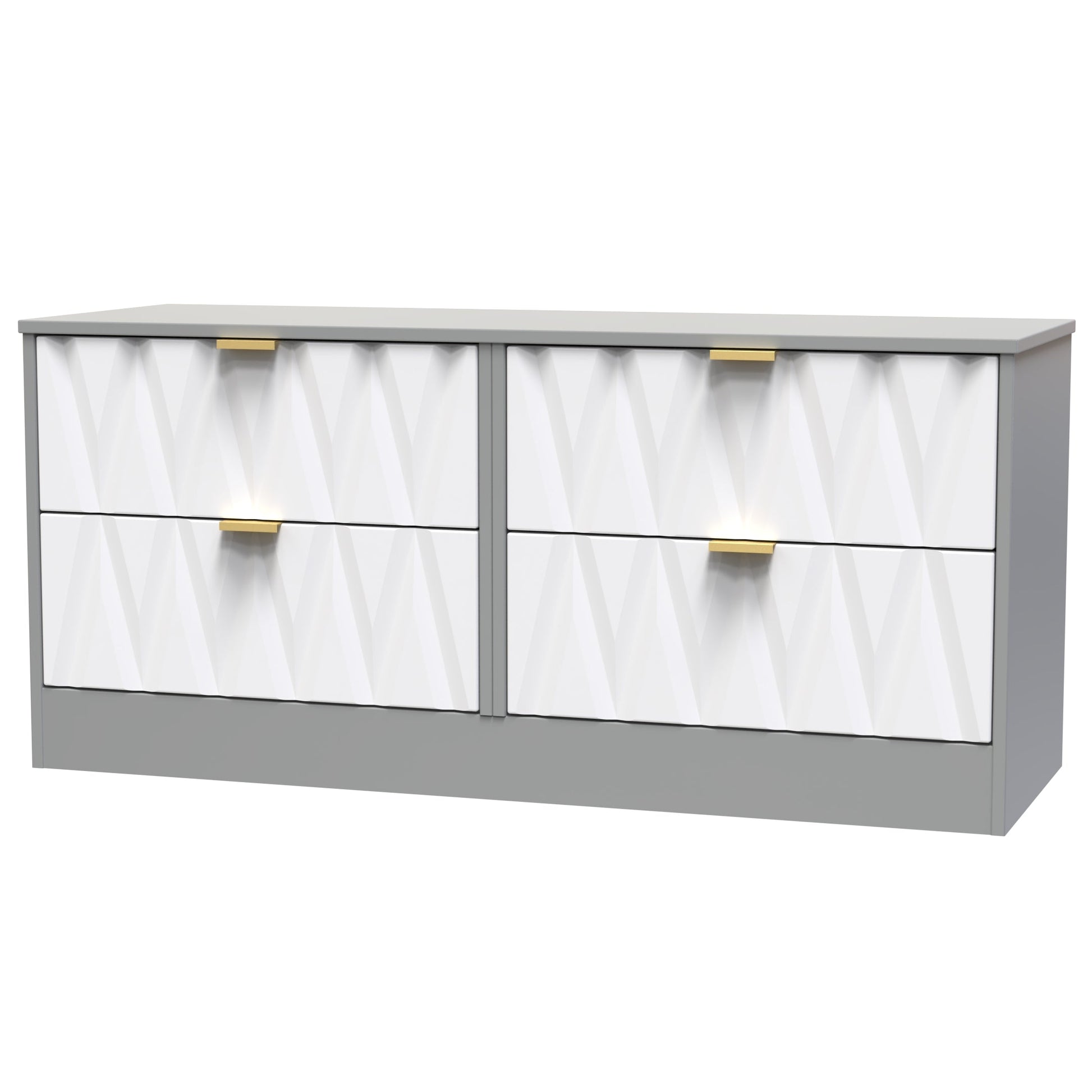 A large 4 drawer bed box. A Perfect storage solution for any room (not just the end of your bed). Could also be used as a low level TV/Media stand. The distinctive front of this striking range combines a variety of colour options, with a choice of handles allowing it to compliment any interior design. Part of the Las Vegas F Collection.