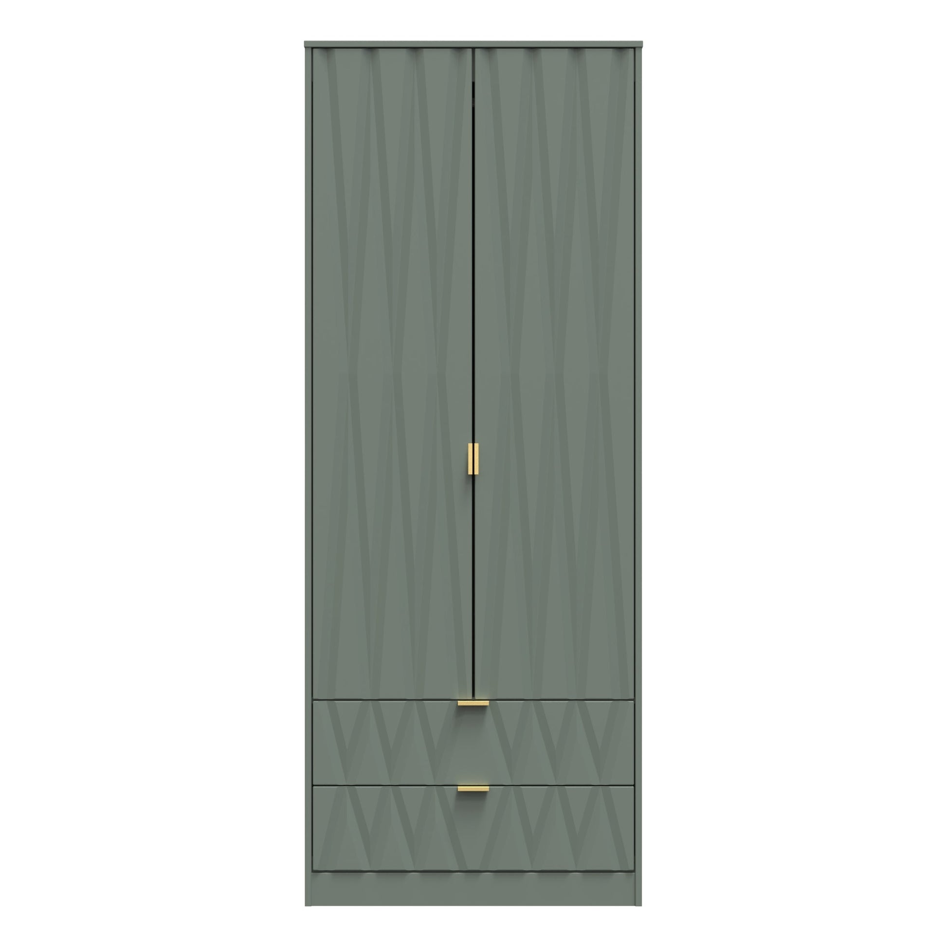 This tall double door wardrobe is perfect for any bedroom. Features the added practicality of 2 full width drawers. The distinctive front of this striking range combines a variety of colour options, with a choice of handles allowing it to compliment any interior design. Part of the Las Vegas F Collection.