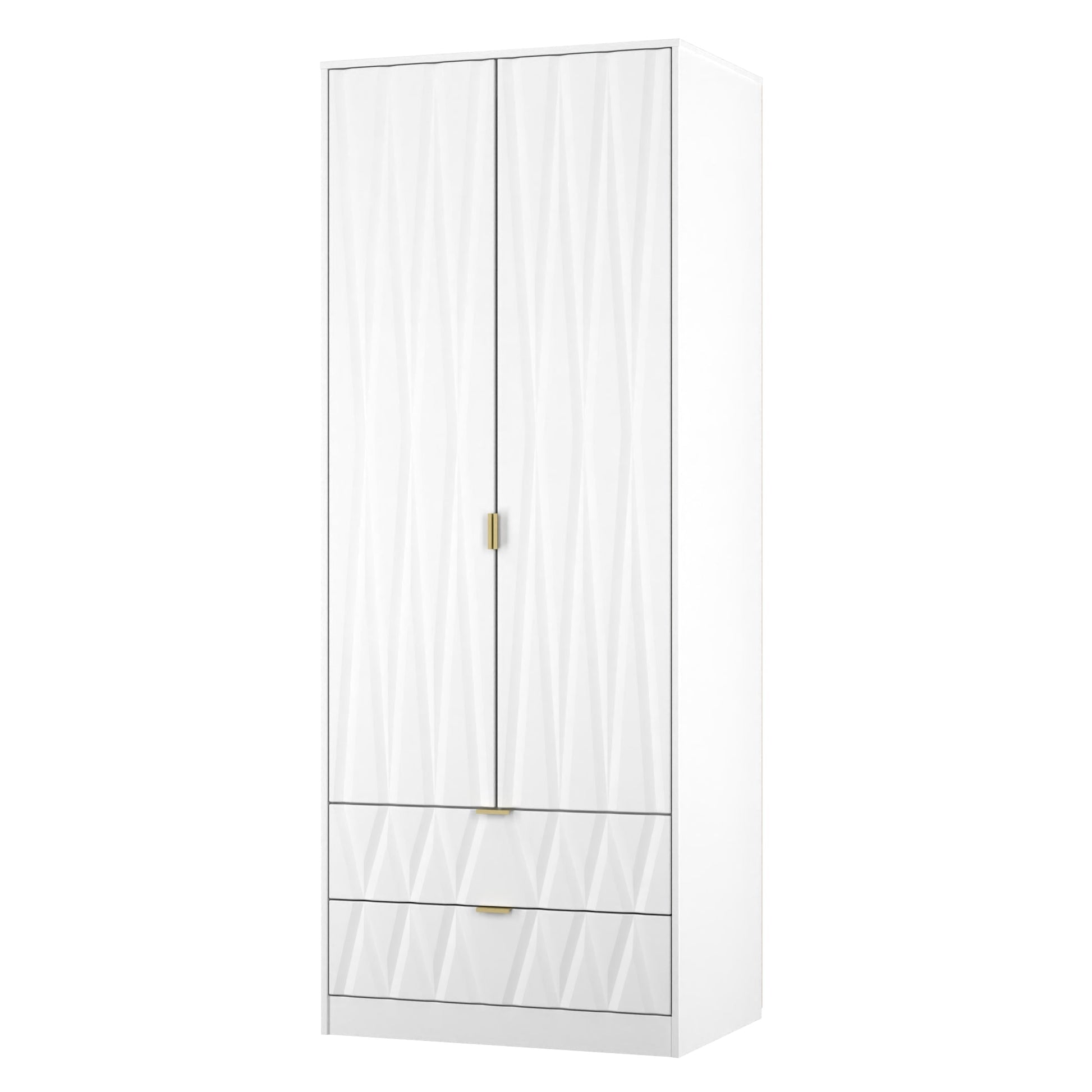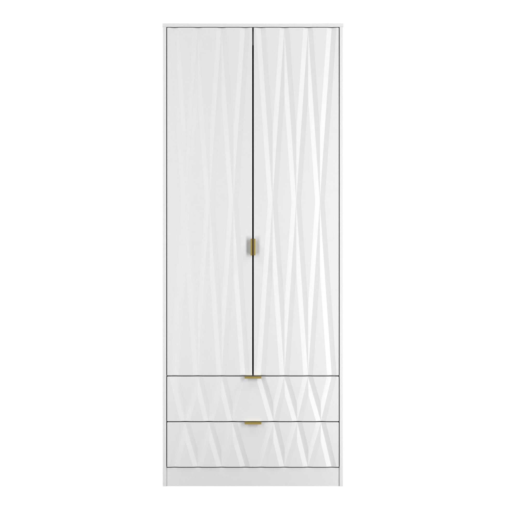 This tall double door wardrobe is perfect for any bedroom. Features the added practicality of 2 full width drawers. The distinctive front of this striking range combines a variety of colour options, with a choice of handles allowing it to compliment any interior design. Part of the Las Vegas F Collection.