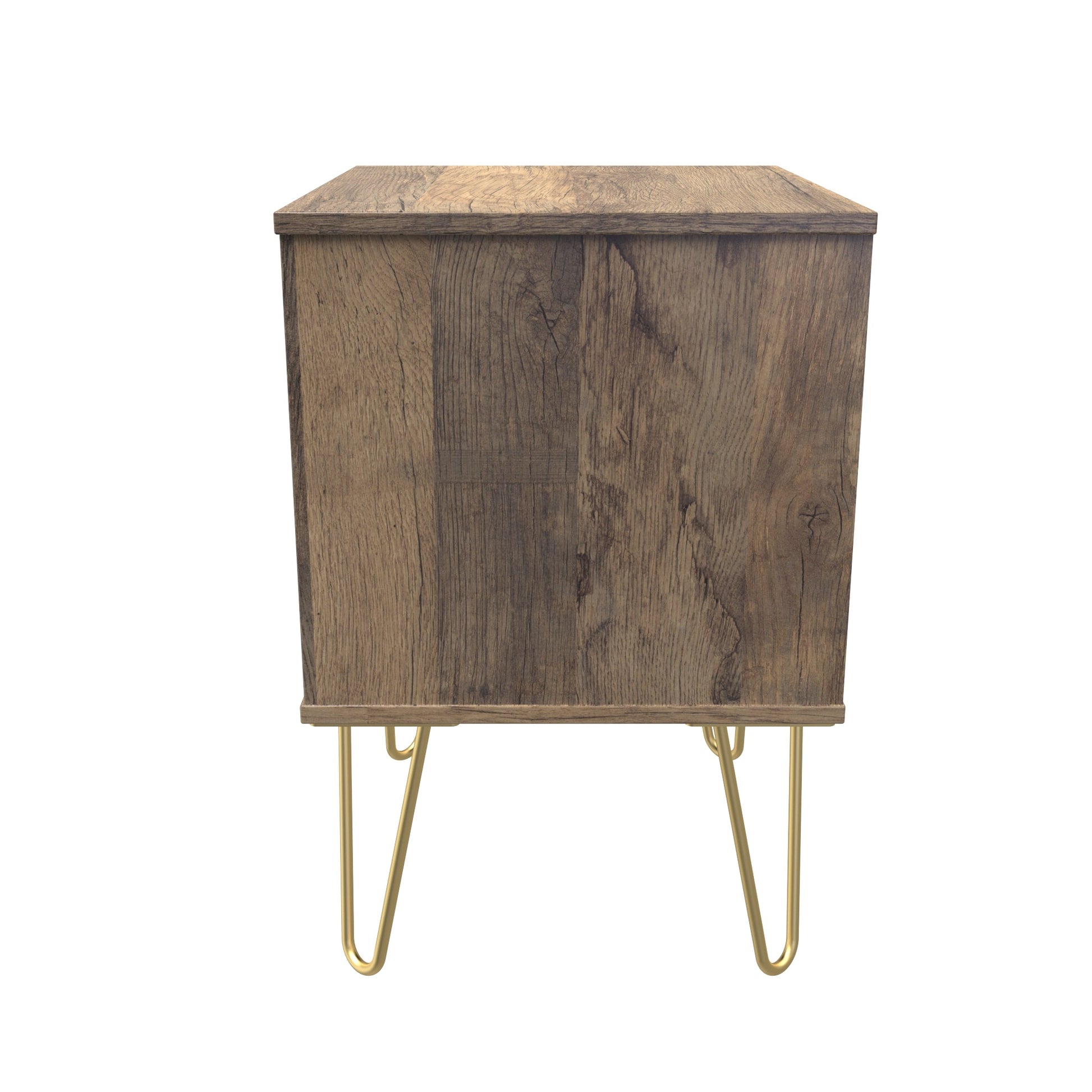 This 2 drawer bedside cabinet is practical and stylish. Perfect for any bedside or as a free standing storage unit. A modern and distinctive range. This ranges unique aesthetic is best represented by the distinctive "Linear" patten of the drawer and door fronts. Also features Gold Metal Handles and Gold Hairpin Legs. Comes in a wide range of colours including eye cathching two tone colour combinations. All our furniture is made to order in the United Kingdom, to the highest quality. It is delivered within 10 working days direct to your location of choice by one of our two man delivery teams, and comes fully assembled (although legs may be removed to prevent damage in transit). Part of the Linear Collection.