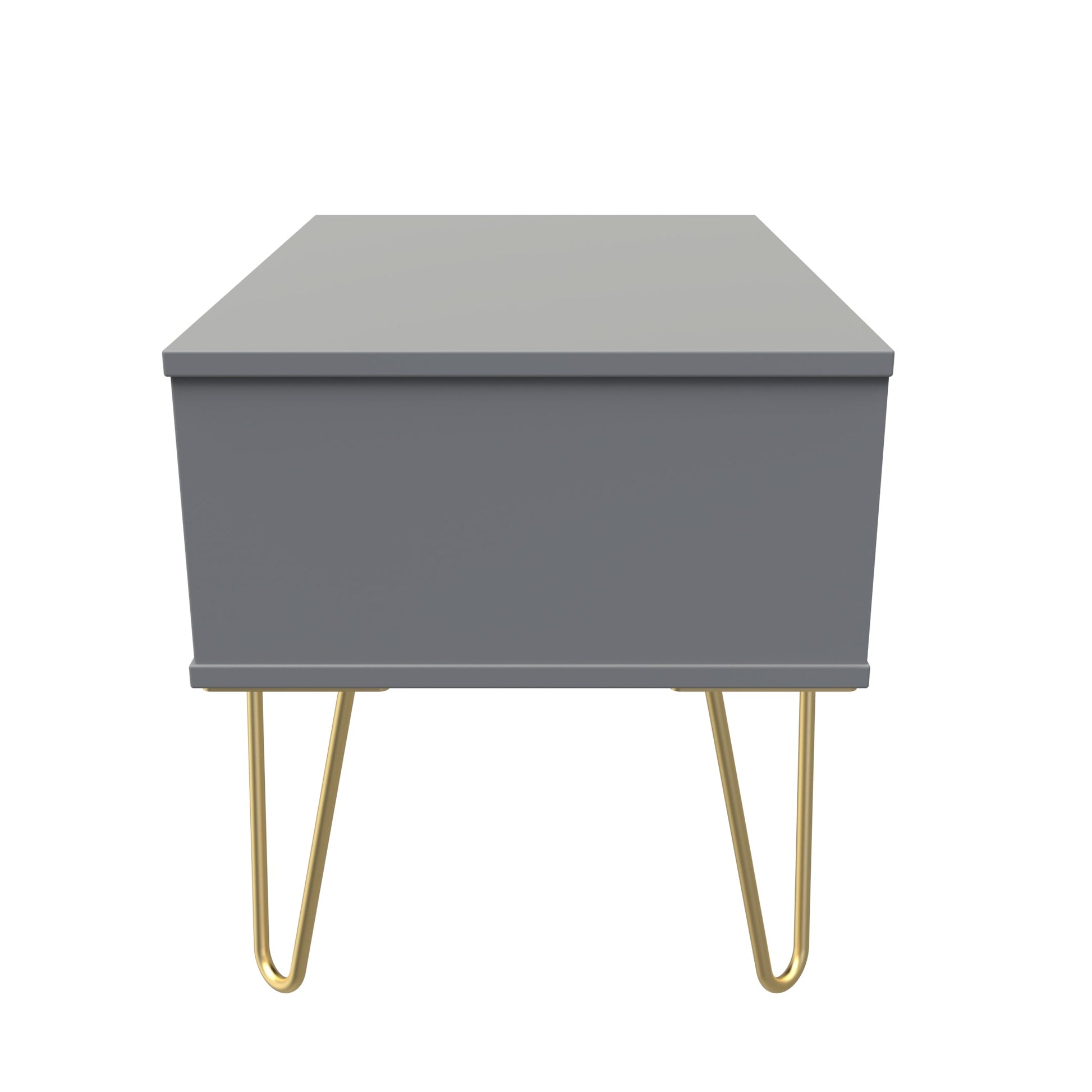 This single drawer bedside cabinet is wider than normal for added practicality. Perfect for any bedside or as a free standing storage unit. A modern and distinctive range. This ranges unique aesthetic is best represented by the distinctive "Linear" patten of the drawer and door fronts. Also features Gold Metal Handles and Gold Hairpin Legs. Comes in a wide range of colours including eye cathching two tone colour combinations. All our furniture is made to order in the United Kingdom, to the highest quality. It is delivered within 10 working days direct to your location of choice by one of our two man delivery teams, and comes fully assembled (although legs may be removed to prevent damage in transit). Part of the Linear Collection.