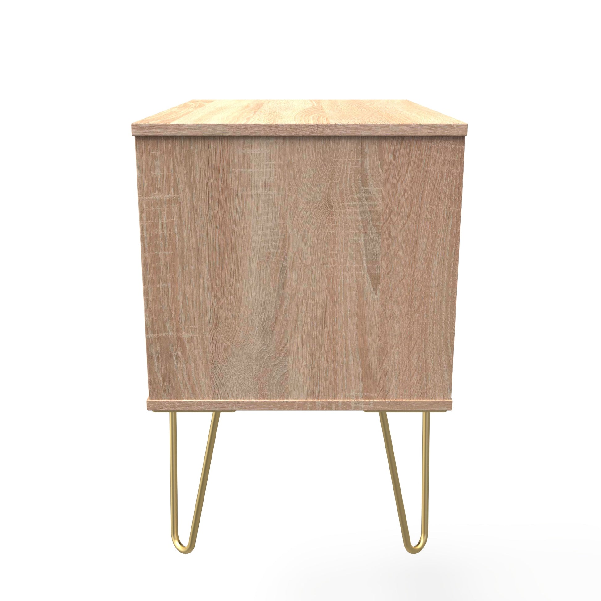 This 2 drawer bedside cabinet is wider than normal for added practicality. Perfect for any bedside or as a free standing storage unit. A modern and distinctive range. This ranges unique aesthetic is best represented by the distinctive "Linear" patten of the drawer and door fronts. Also features Gold Metal Handles and Gold Hairpin Legs. Comes in a wide range of colours including eye cathching two tone colour combinations. All our furniture is made to order in the United Kingdom, to the highest quality. It is delivered within 10 working days direct to your location of choice by one of our two man delivery teams, and comes fully assembled (although legs may be removed to prevent damage in transit). Part of the Linear Collection.