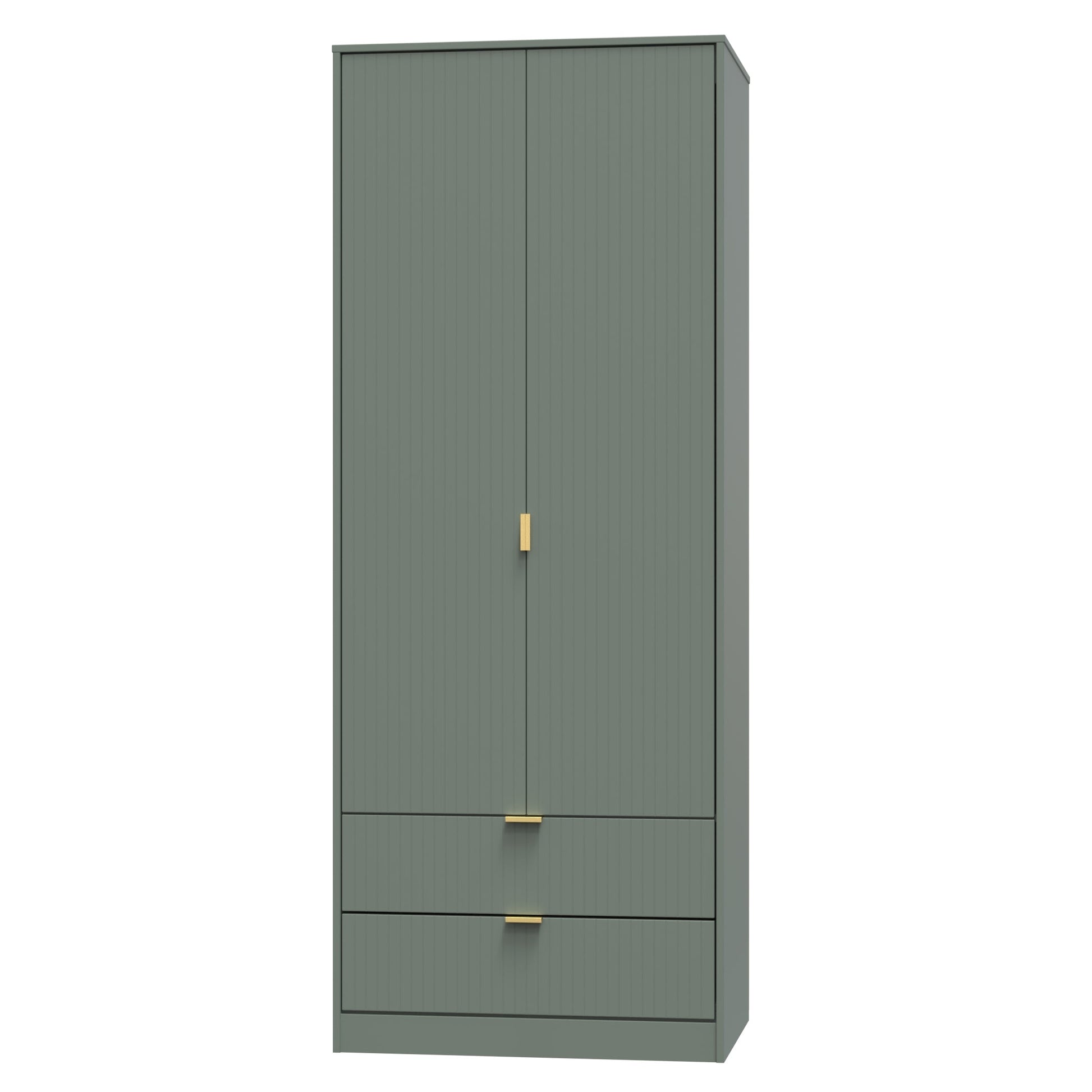 This tall double door wardrobe is perfect for any bedroom. Features the added practicality of 2 full width drawers. A modern and distinctive range. This ranges unique aesthetic is best represented by the distinctive "Linear" patten of the drawer and door fronts. Also features Gold Metal Handles and Gold Hairpin Legs. Comes in a wide range of colours including eye cathching two tone colour combinations. All our furniture is made to order in the United Kingdom, to the highest quality. It is delivered within 10 working days direct to your location of choice by one of our two man delivery teams, and comes fully assembled (although legs may be removed to prevent damage in transit). Part of the Linear Collection.