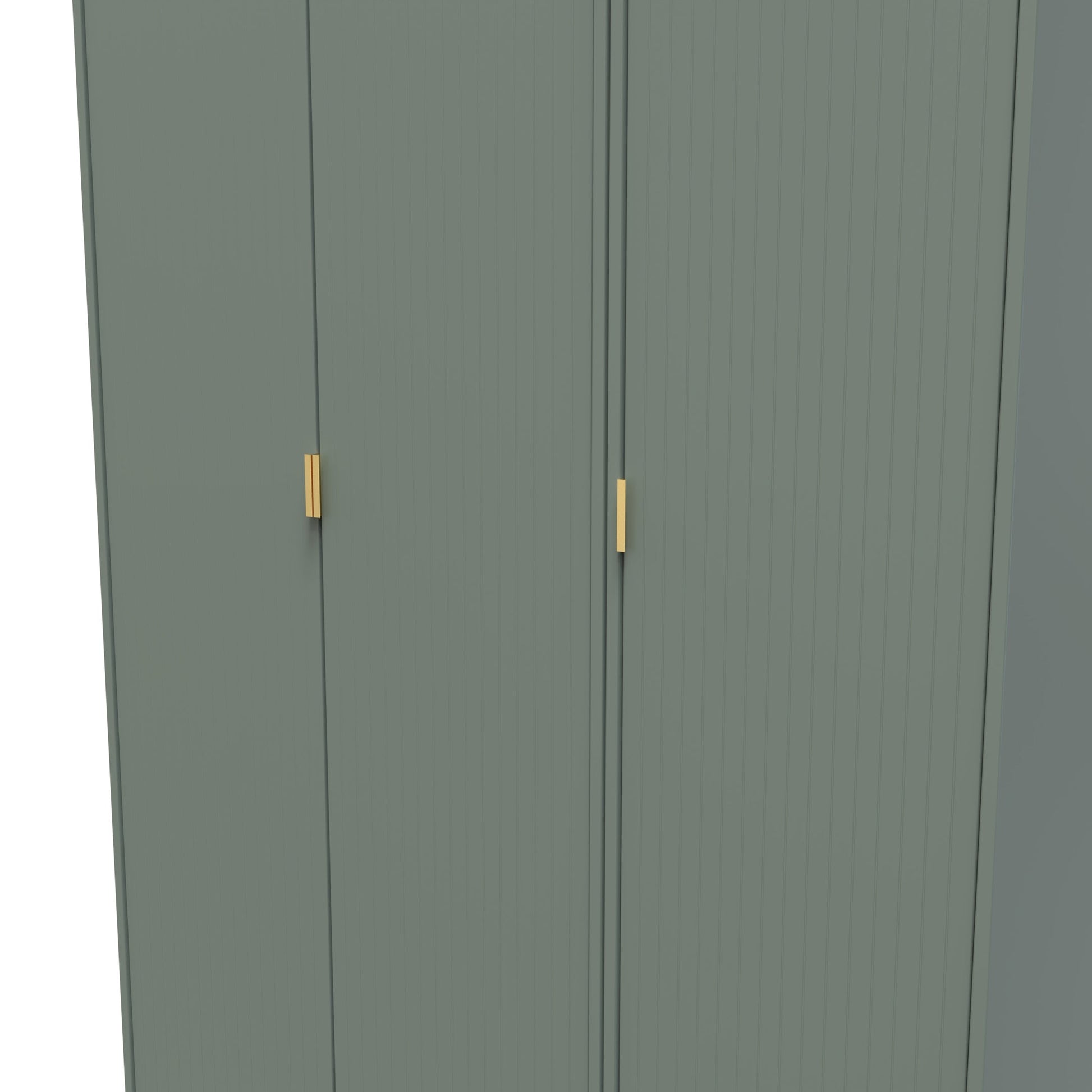 This tall triple 3 door wardrobe is perfect for any bedroom when a normal wardrobe is just not large enough. This ranges unique aesthetic is best represented by the distinctive "Linear" patten of the drawer and door fronts. Also features Gold Metal Handles and Gold Hairpin Legs. Comes in a wide range of colours including eye cathching two tone colour combinations. All our furniture is made to order in the United Kingdom, to the highest quality. It is delivered within 10 working days direct to your location of choice by one of our two man delivery teams, and comes fully assembled (although legs may be removed to prevent damage in transit). Part of the Linear Collection.