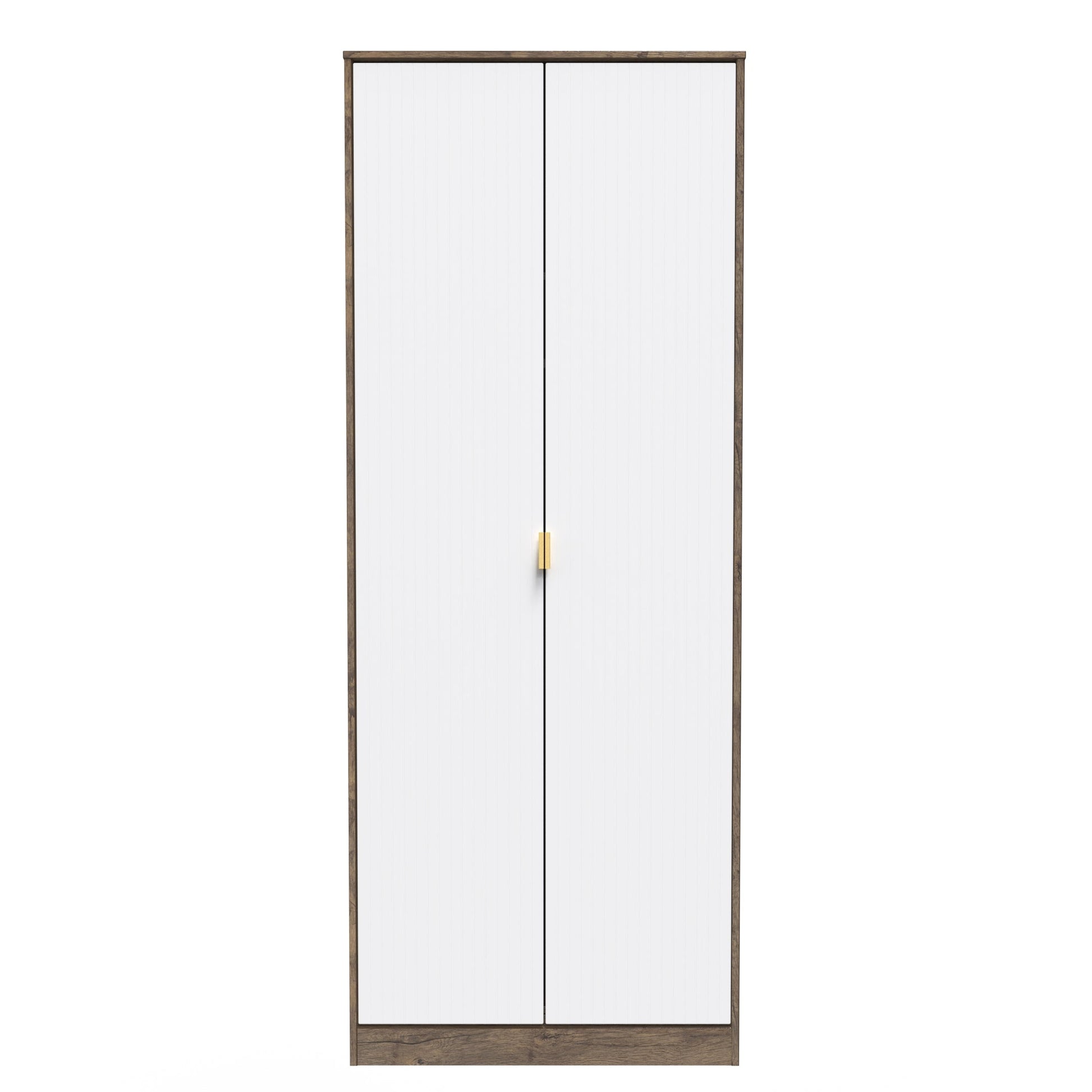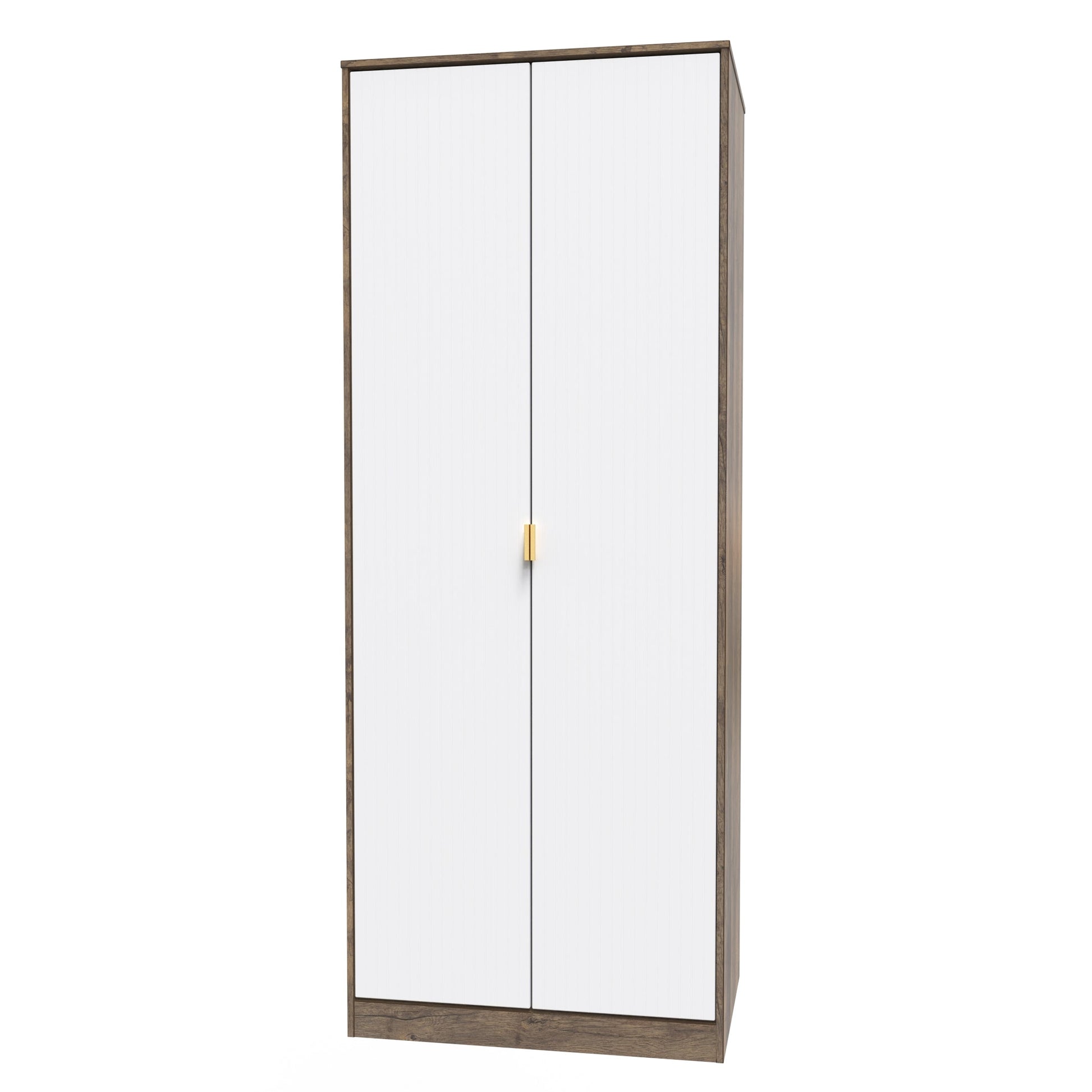 Linear Tall Wardrobe White & Oak 2 Doors 1 Shelf 197cm