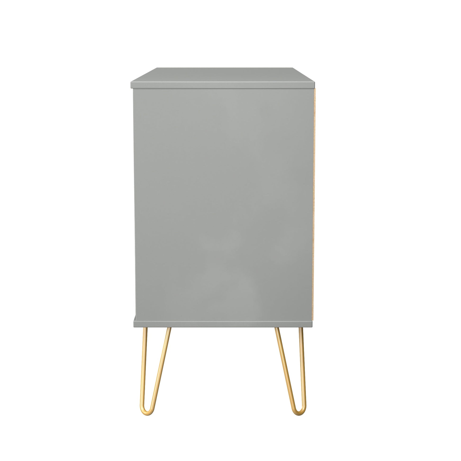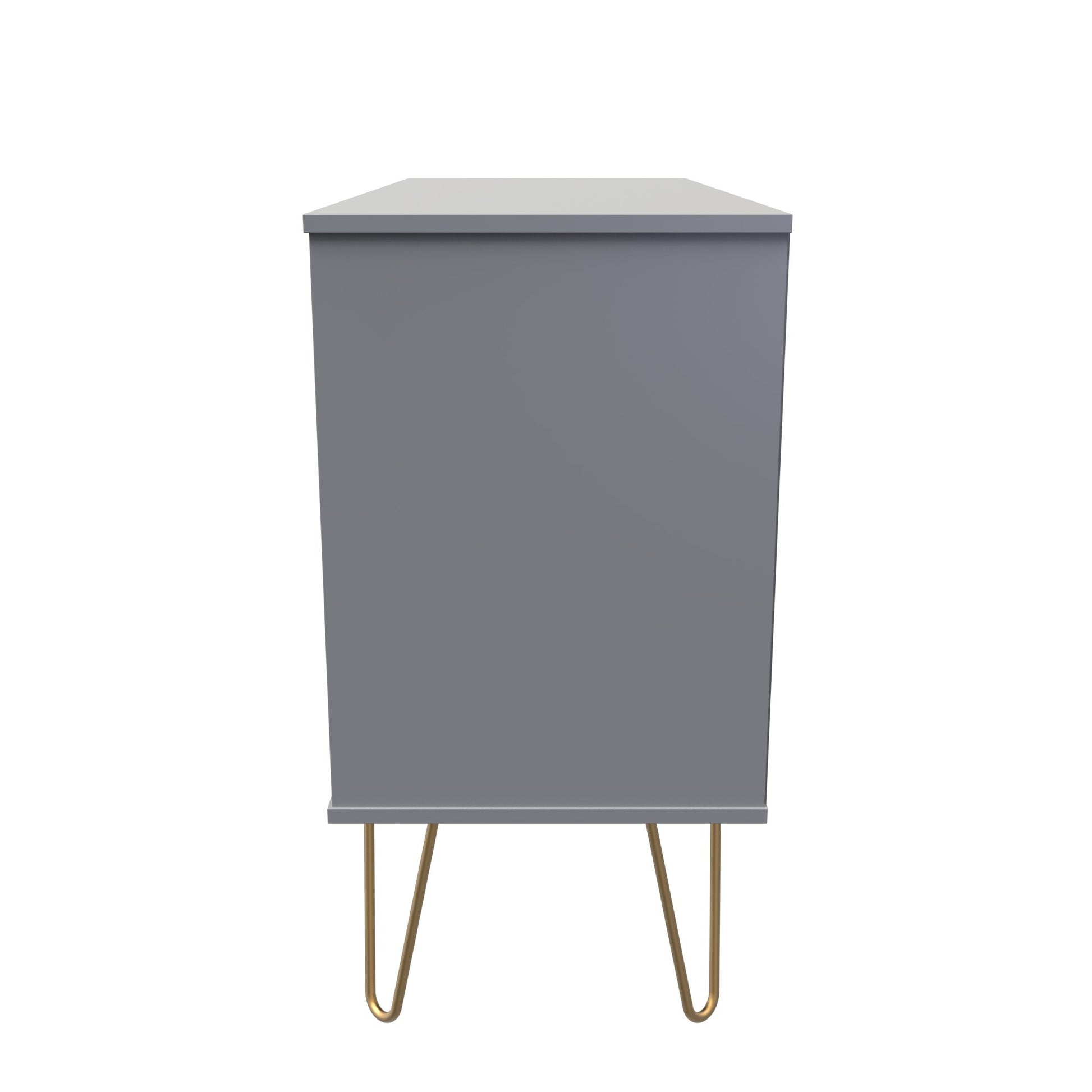 This modern storage unit features 3 drawers and a large storage area with a single shelf. Can be used as a TV/Media unit or sideboard. A modern and distinctive range. This ranges unique aesthetic is best represented by the distinctive "Linear" patten of the drawer and door fronts. Also features Gold Metal Handles and Gold Hairpin Legs. Comes in a wide range of colours including eye cathching two tone colour combinations. All our furniture is made to order in the United Kingdom, to the highest quality. It is delivered within 10 working days direct to your location of choice by one of our two man delivery teams, and comes fully assembled (although legs may be removed to prevent damage in transit). Part of the Linear Collection.