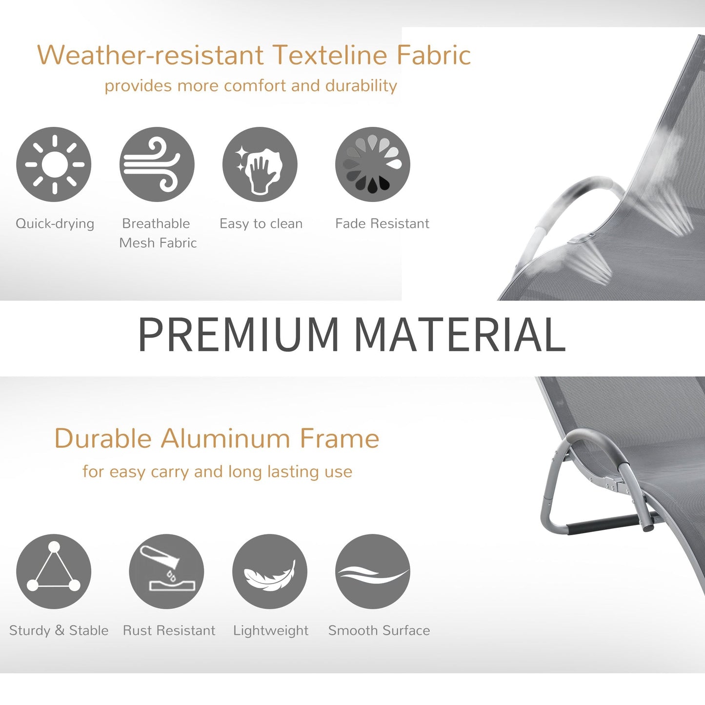 Outdoor lounging just got a lot better. Pair your days outside with this Outsunny lounger for complete relaxation. The frame is made from aluminium to be suitable for everyday use, is crafted into a smooth curved shape that better adapts to your body shape. It's fitted with a breathable mesh fabric seat that holds your body in place, with a removable pillow for extra comfort and support to the head and neck. Finished with foam pads on the armrests and bottom frame part for extra protection.