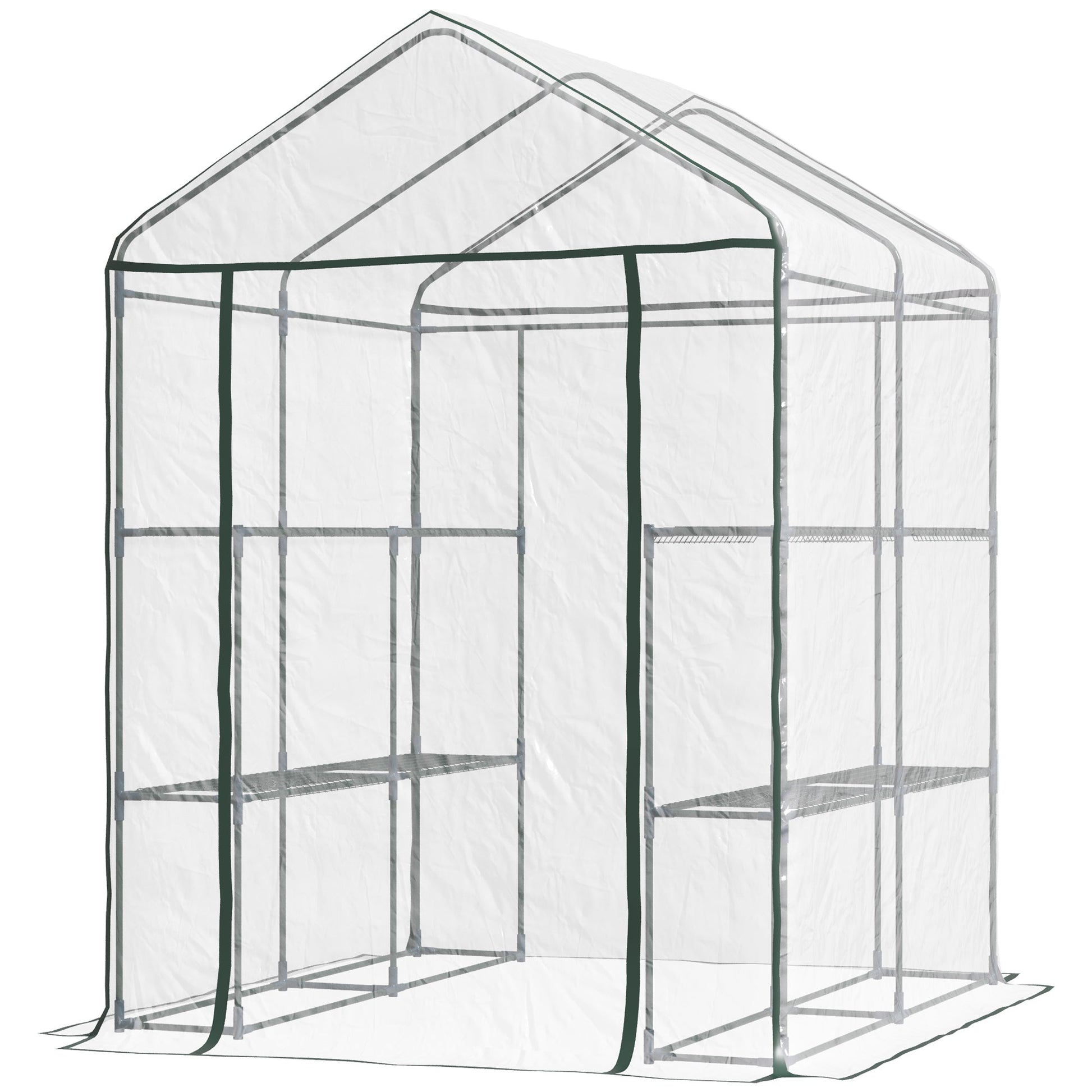 Metal Frame Walk in Grow Herb Plant Portable Greenhouse Transparent 143 L x 143W x 195H cm