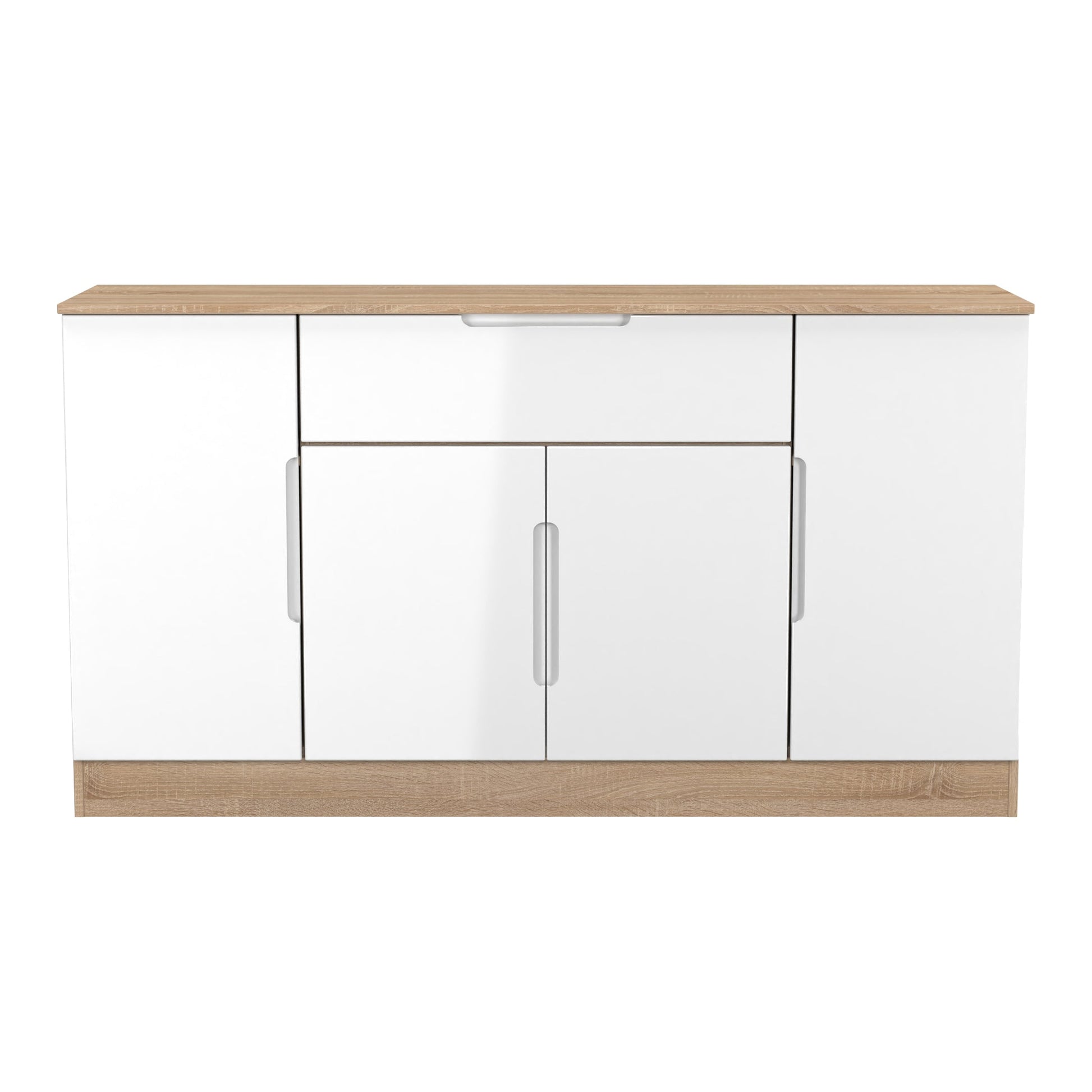 Milan Large Sideboard White & Oak 4 Doors 2 Shelves 1 Drawer 144cm
