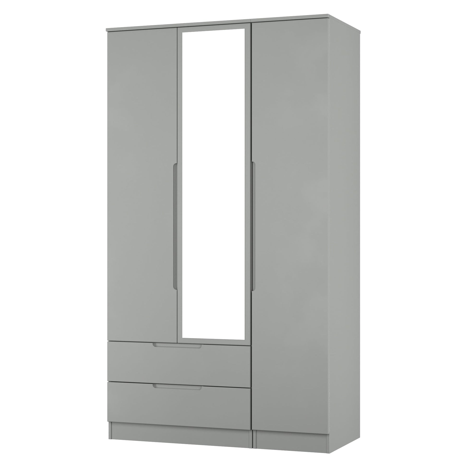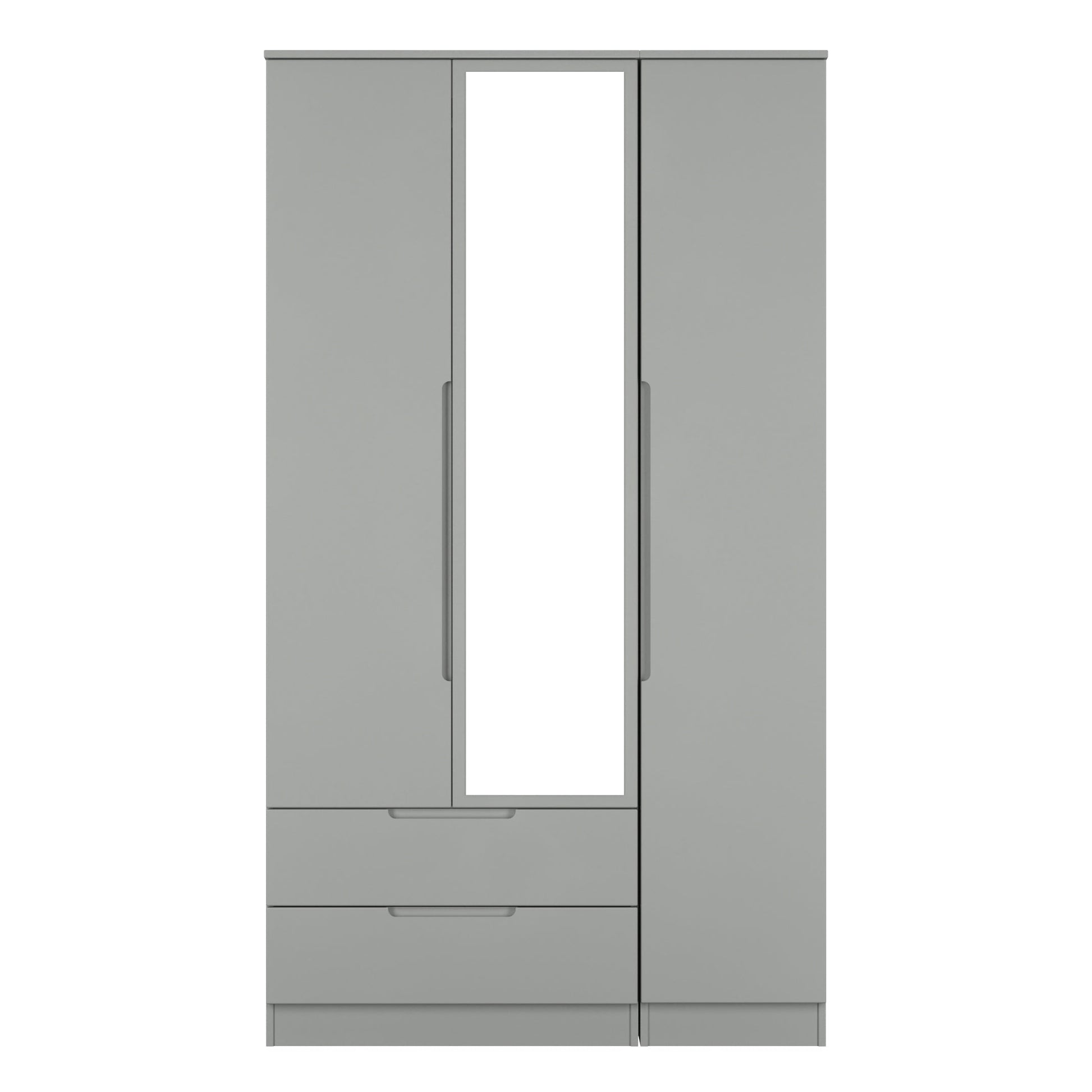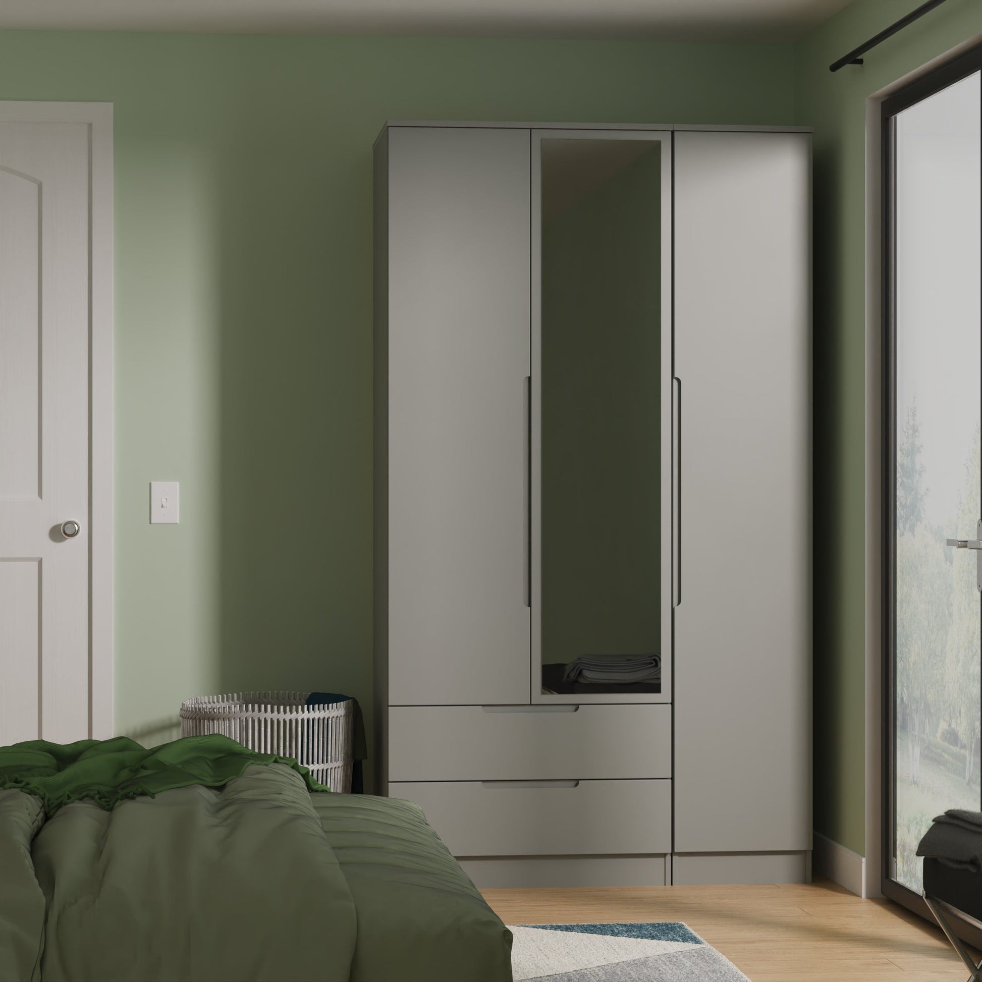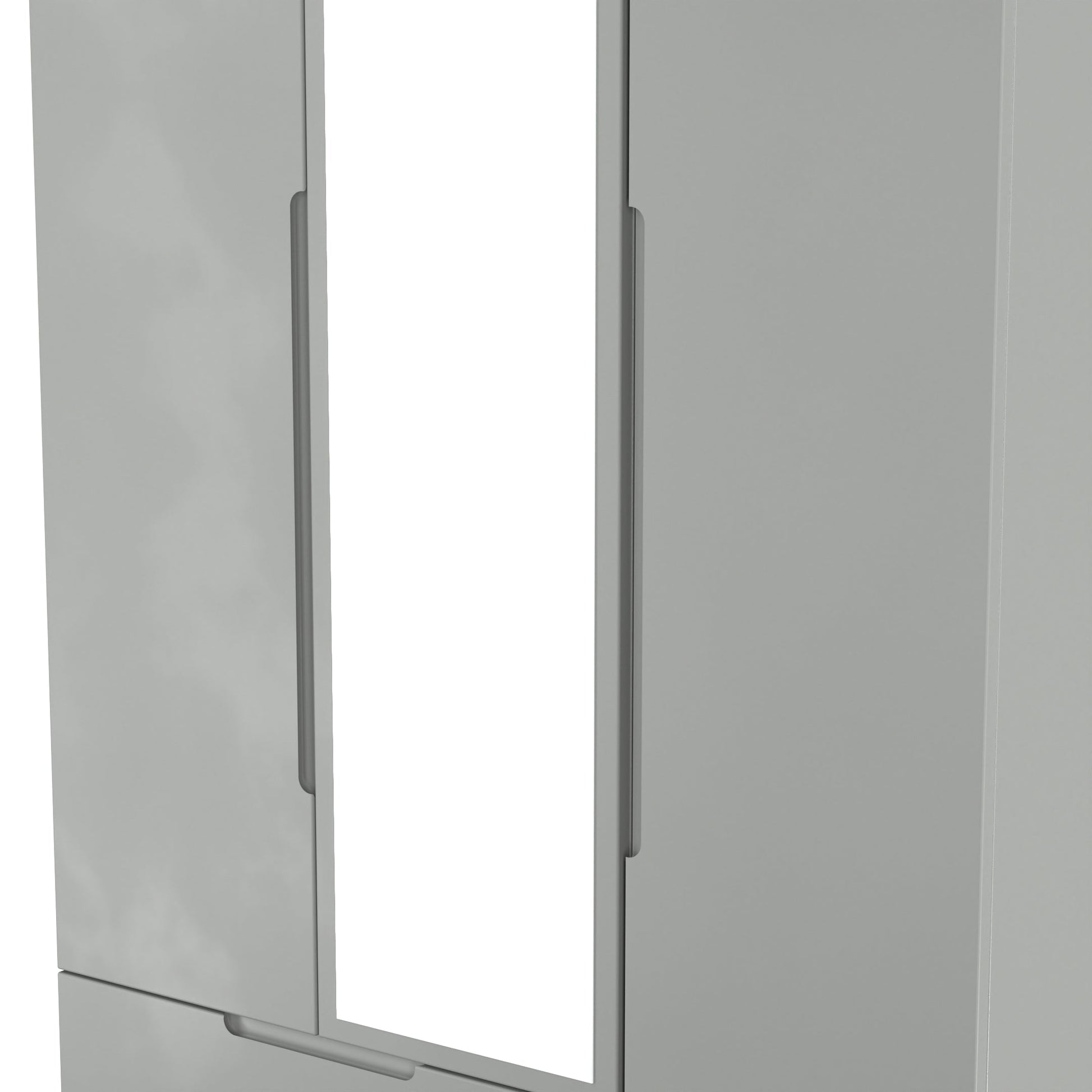 Milan Tall Mirror Wardrobe Grey 1 Shelf 2 Drawers 196cm