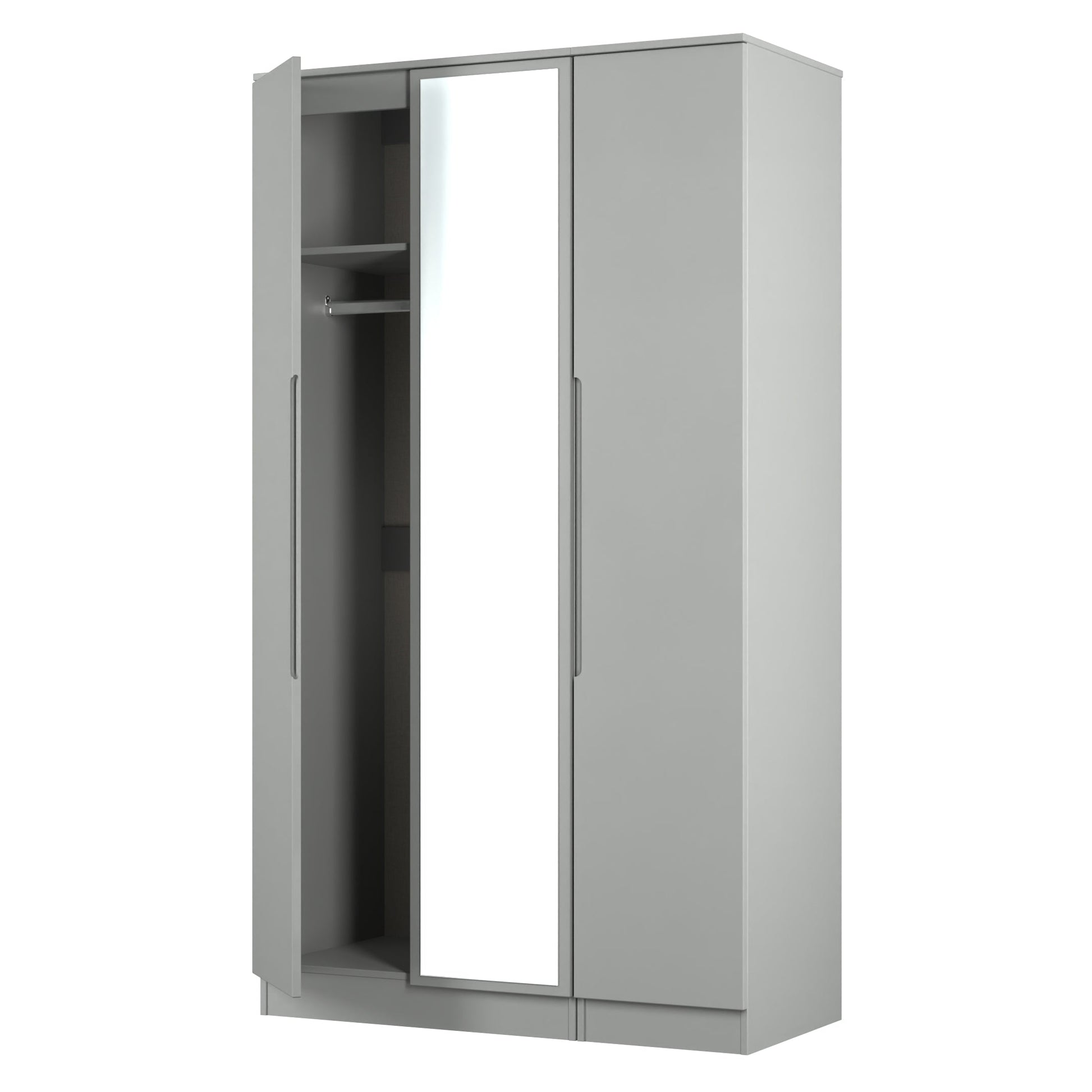 Milan Tall Mirror Wardrobe Grey 2 Shelves 196cm