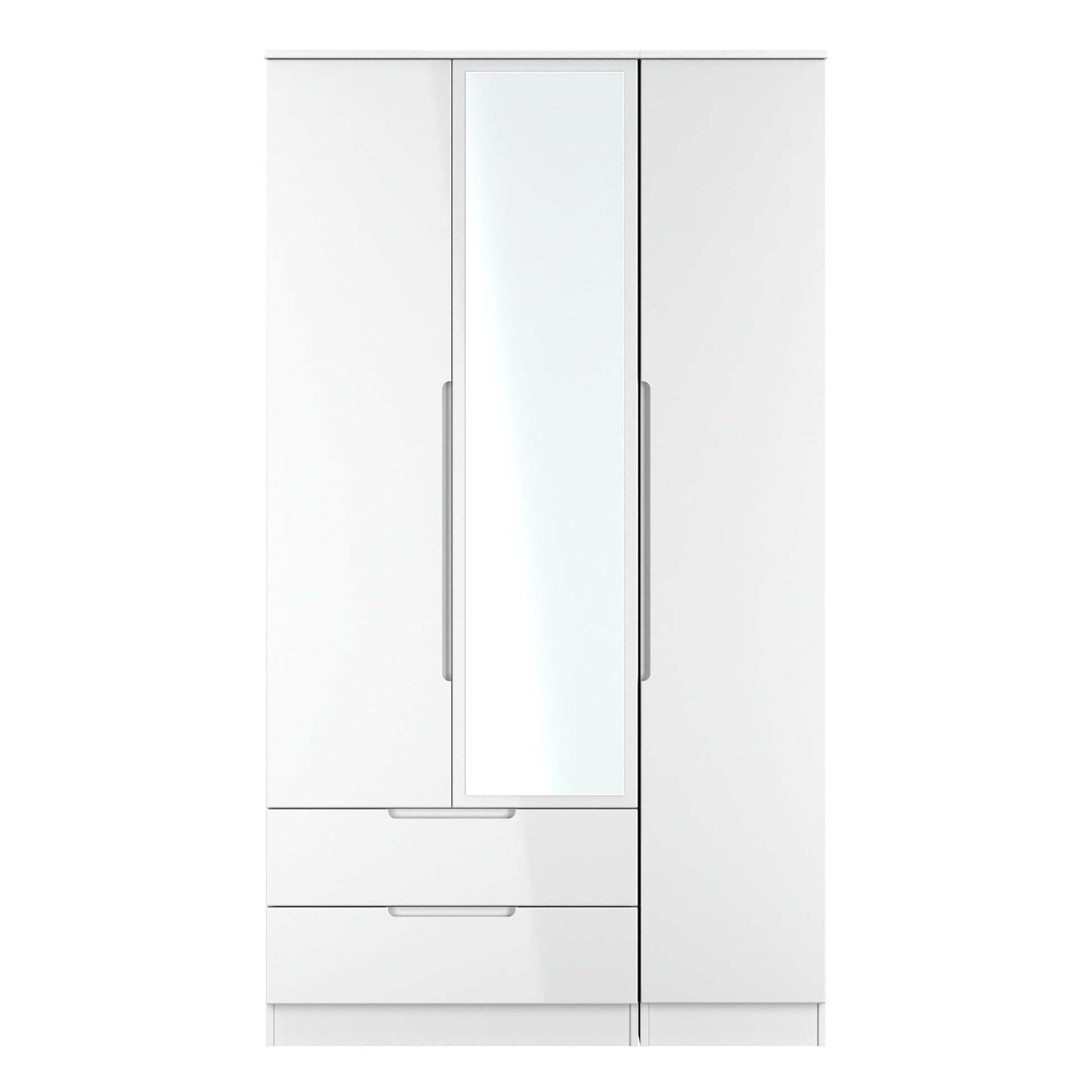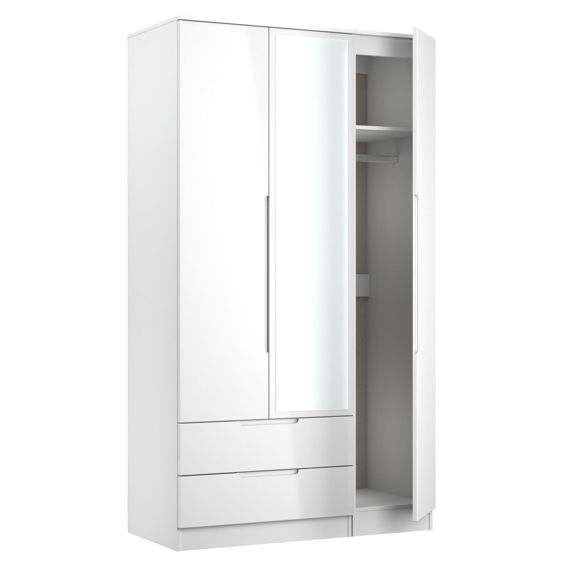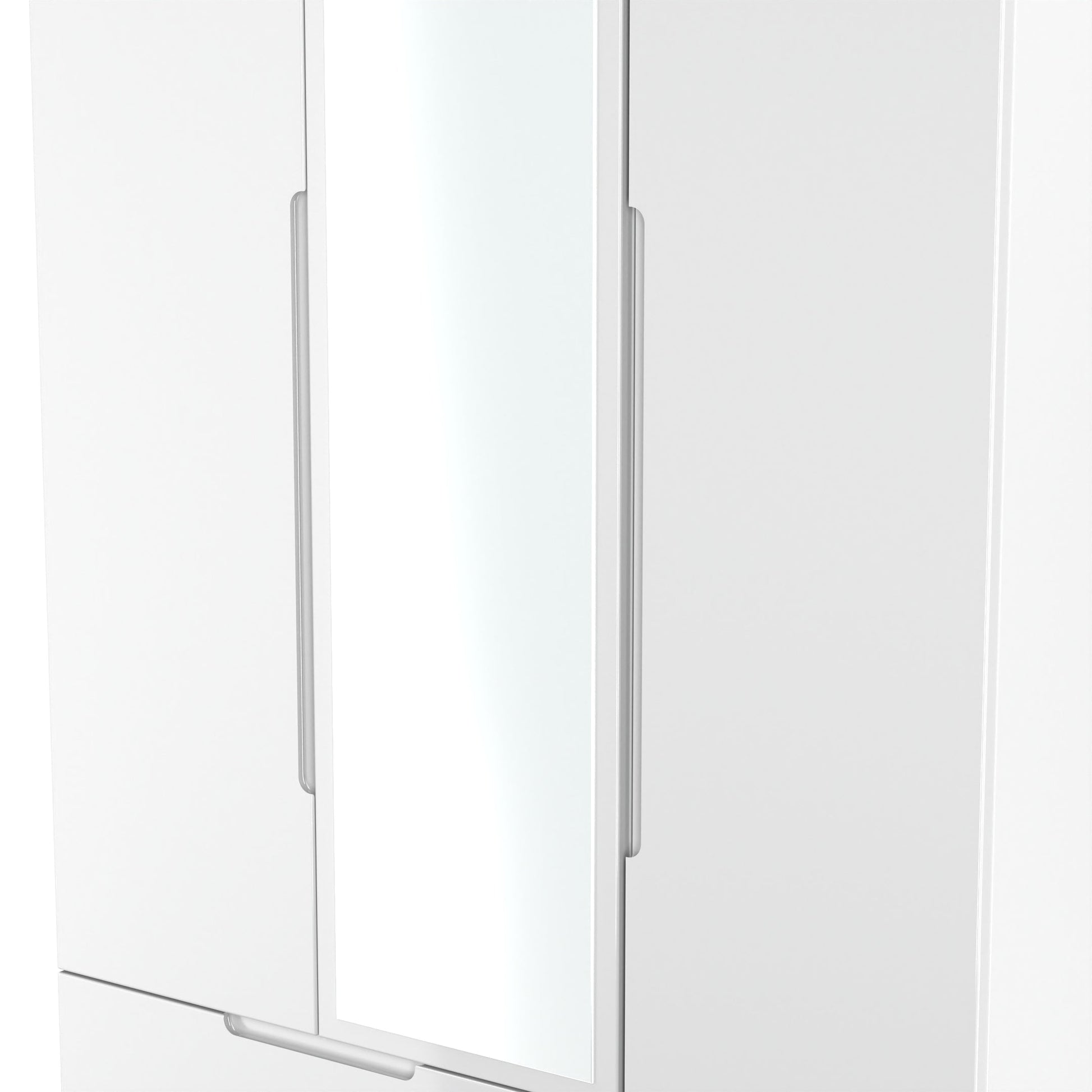 Milan Tall Mirror Wardrobe White 1 Shelf 2 Drawers 196cm
