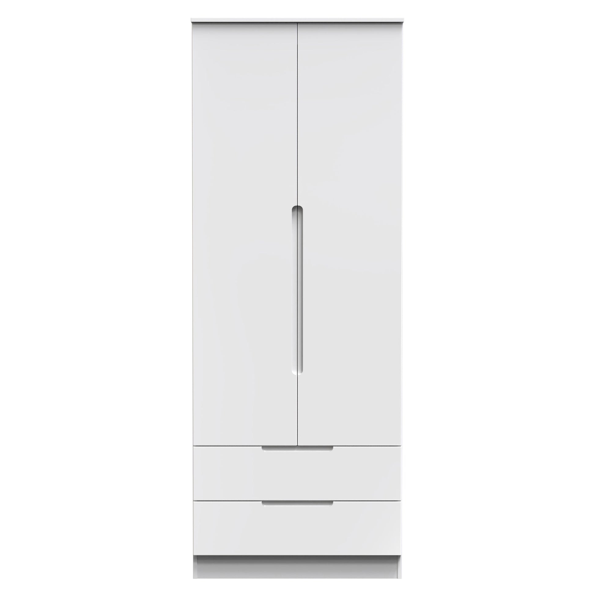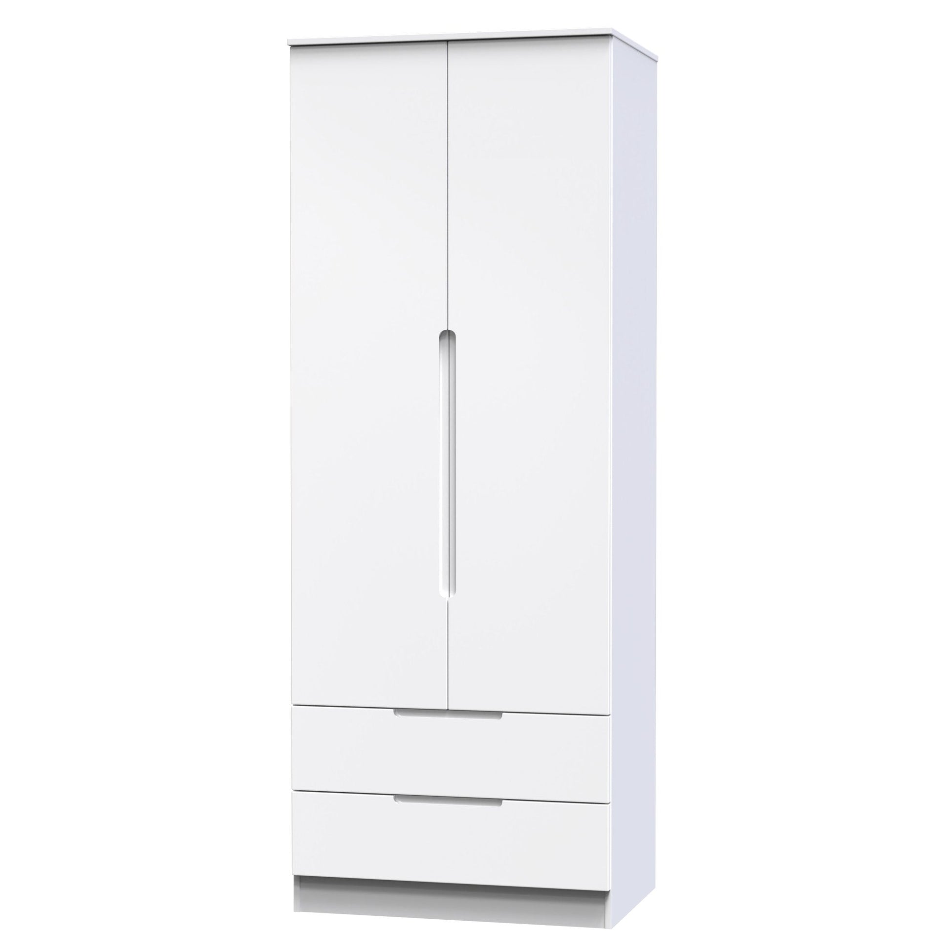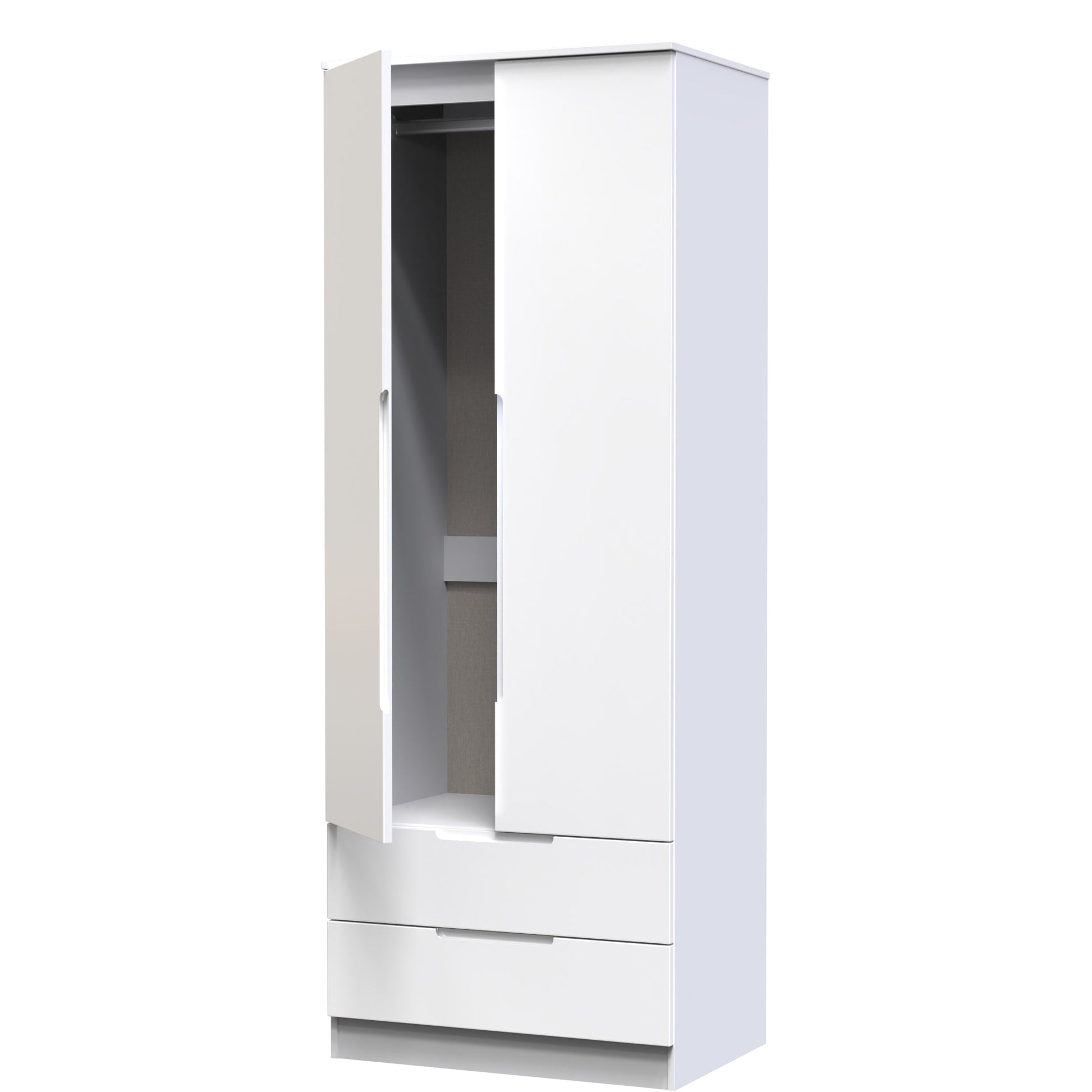 Milan Tall Wardrobe White 2 Drawers 196cm