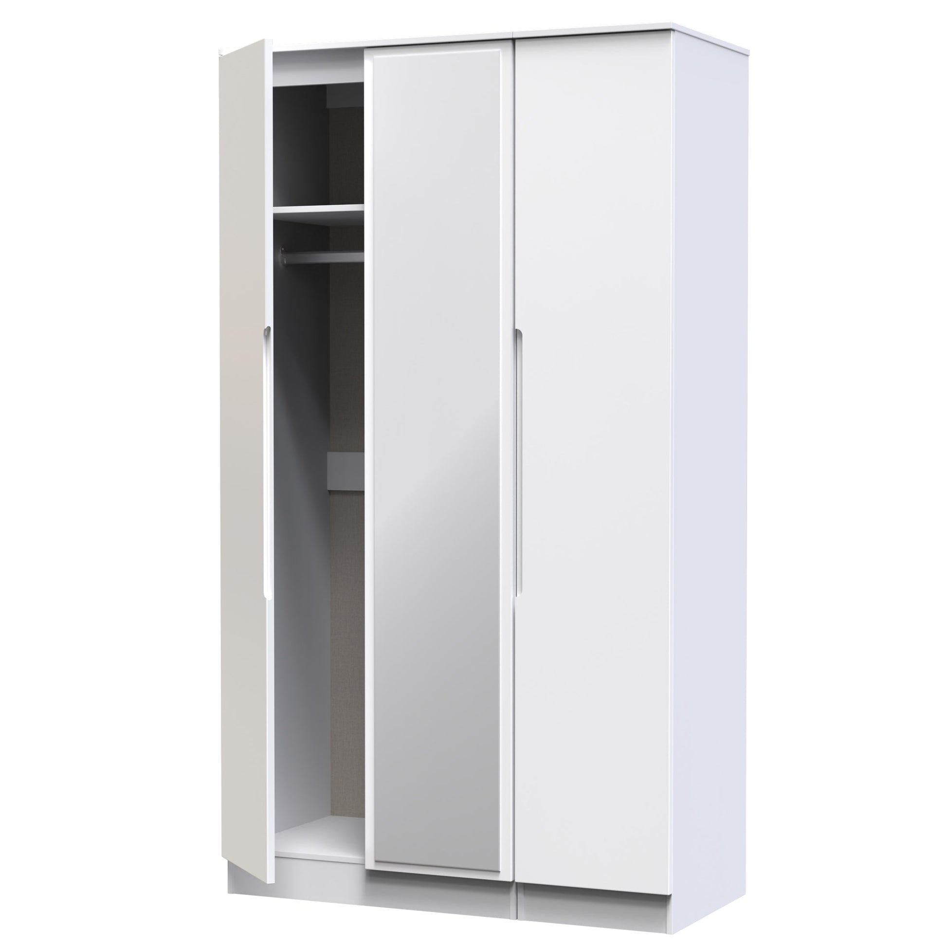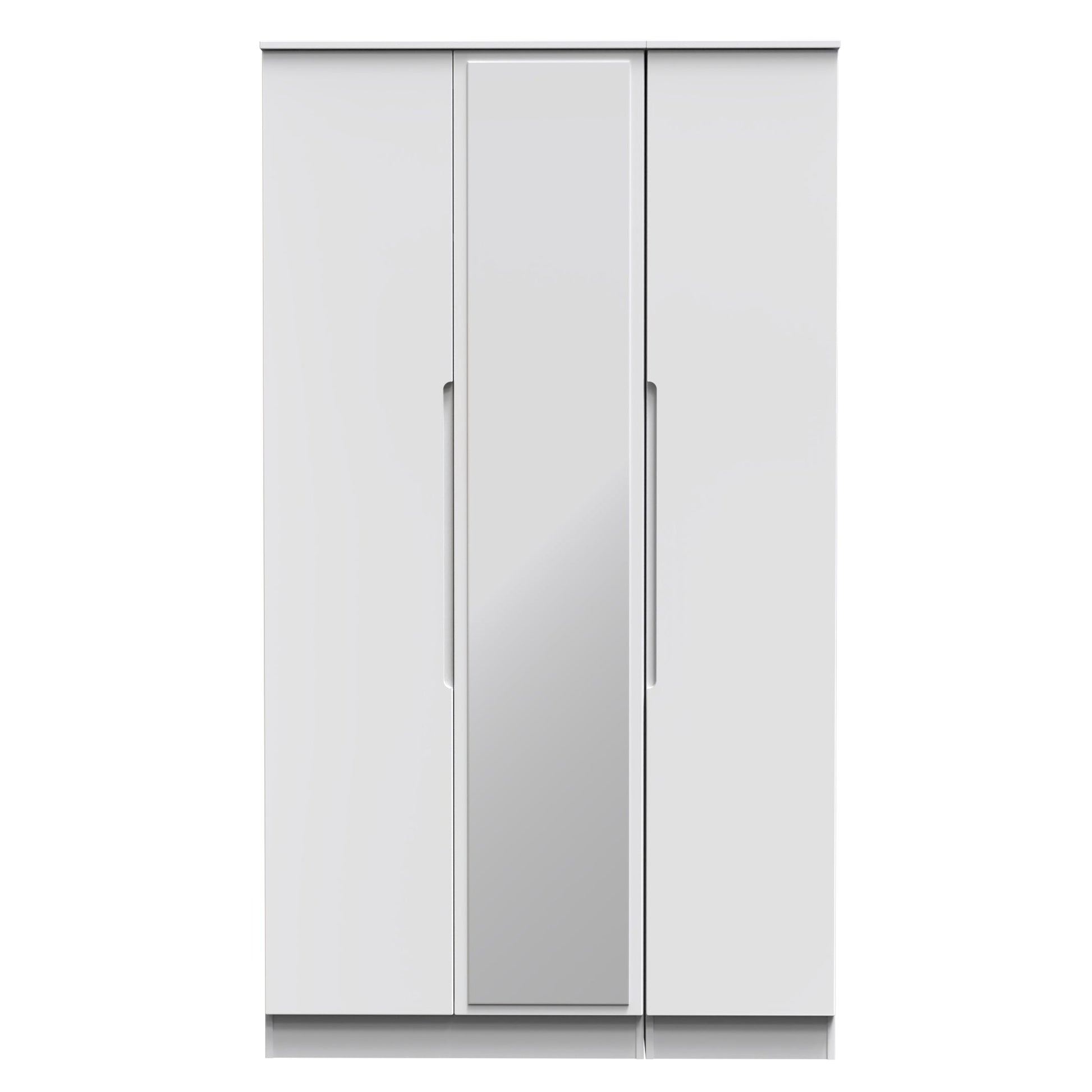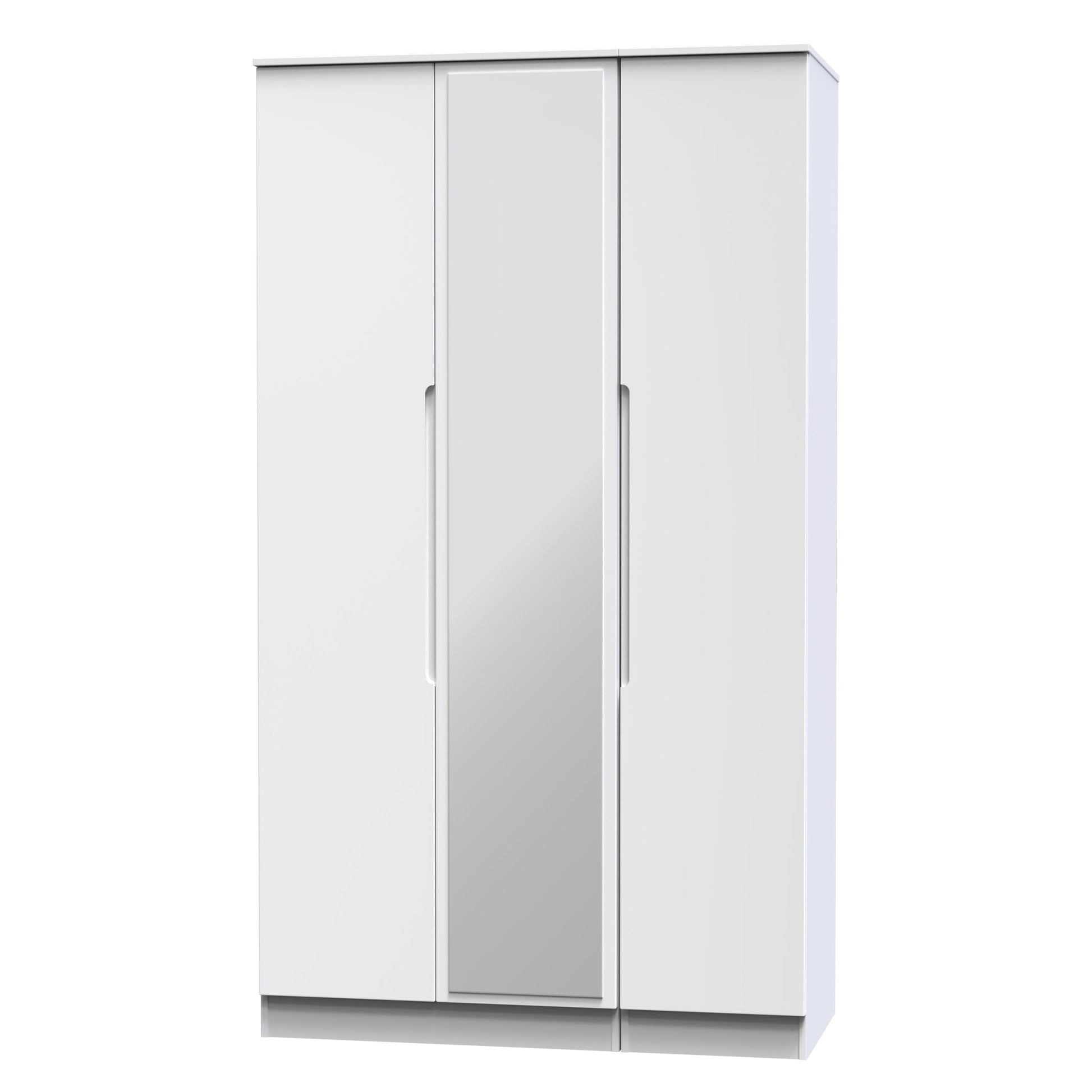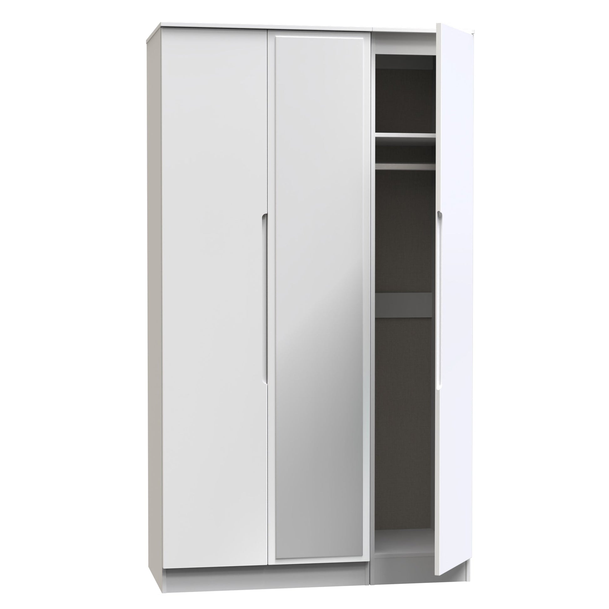 This tall triple 3 door wardrobeis perfect for any bedroom when a normal wardrobe is just not large enough. Also features a full height single mirrored door. An exciting new range ideal for the modern contemporary home it comes with distictive indented handles, perfect for the 21st century home. All our furniture is made to order in the United Kingdom, to the highest quality. It is delivered within 10 working days direct to your location of choice by one of our two man delivery teams, and comes fully assembled - Please Note that any handles or legs may be removed durning transit to avoid the risk of damage. Part of the Milan Collection.