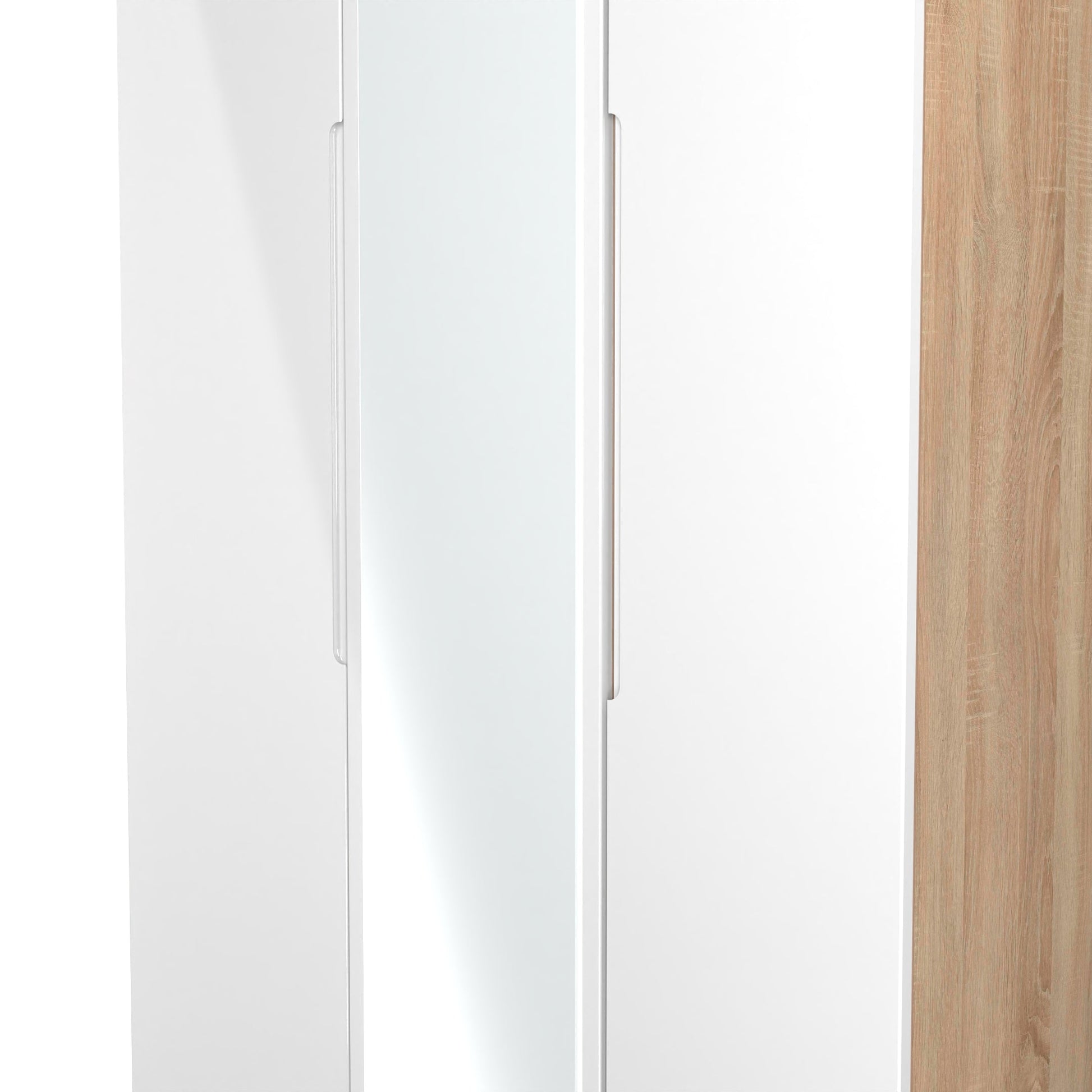 Milan Tall Mirror Wardrobe White & Oak 2 Shelves 196cm