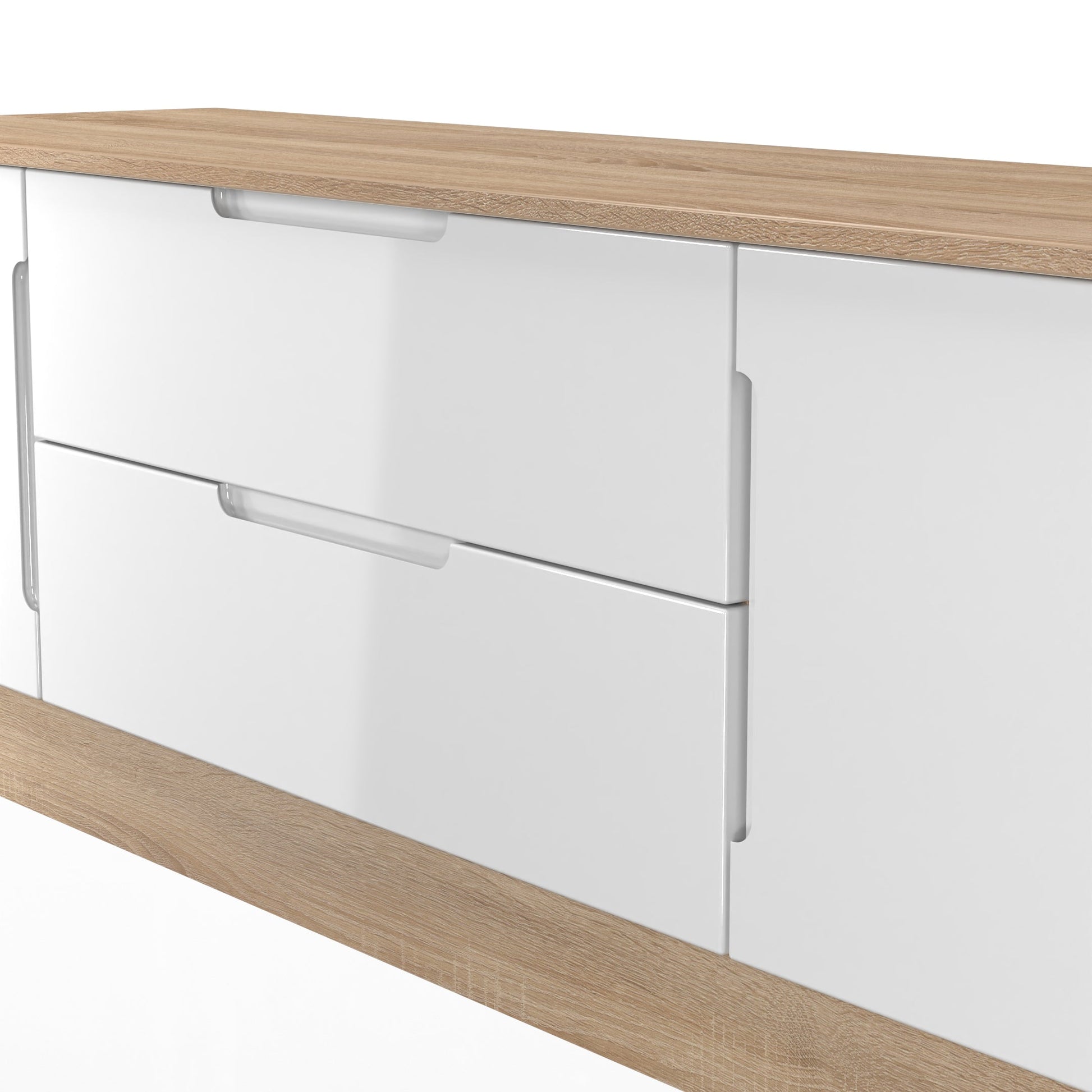 Milan TV Unit White & Oak 2 Drawers 2 Doors 144cm