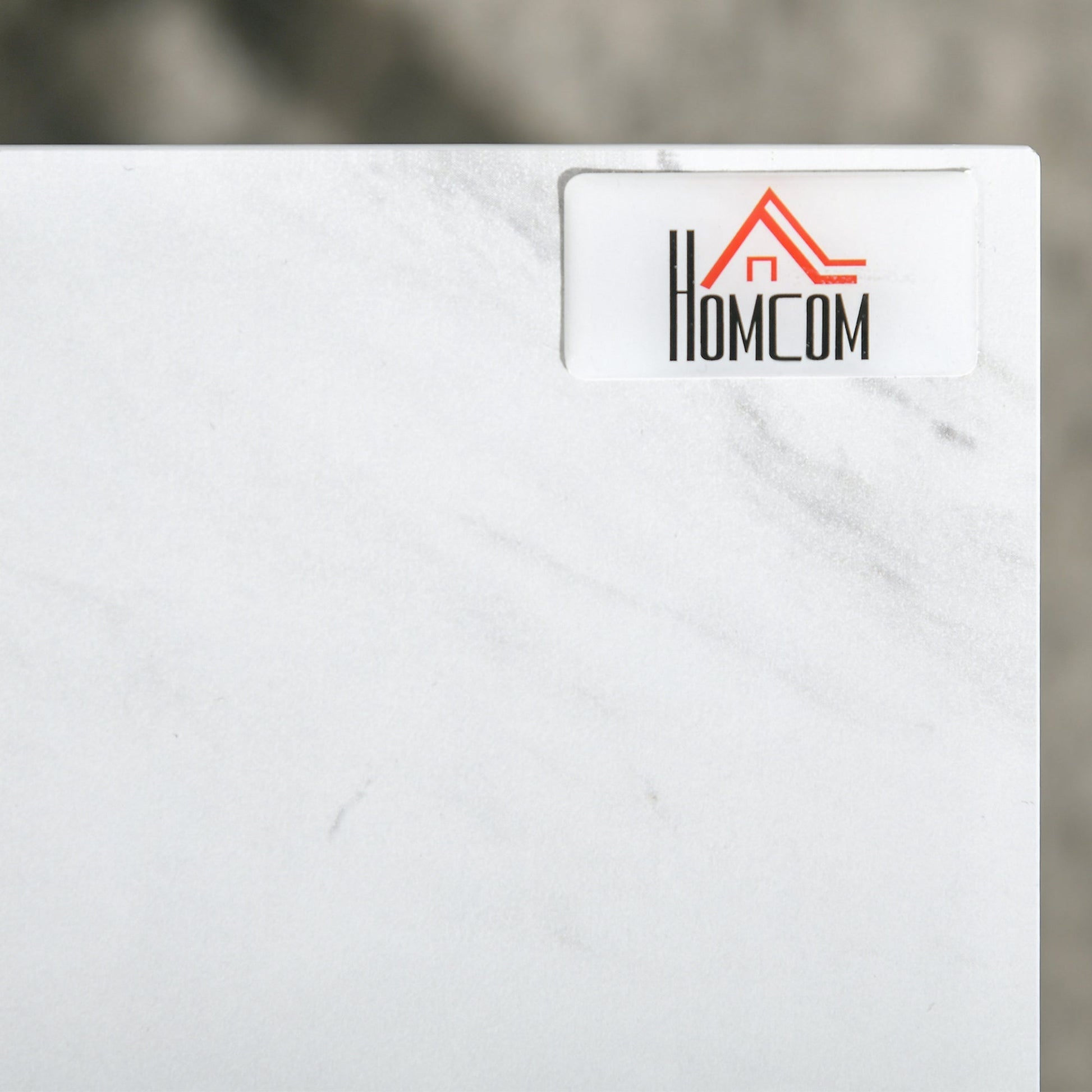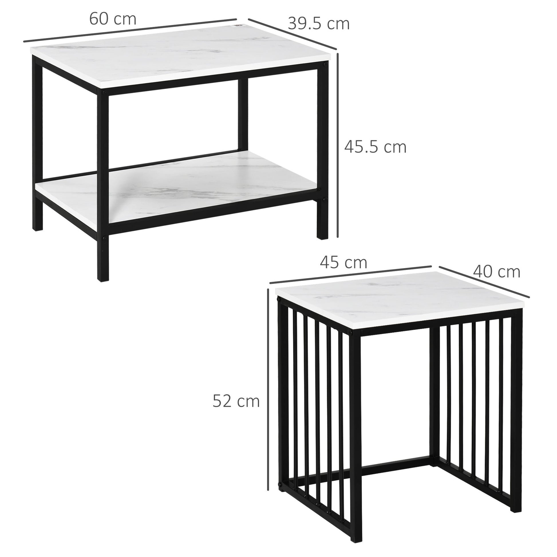 A marble coffee table set from HOMCOM modernises your home. Two tables – a tall table, which can be used as a nightstand or end table, whilst the small table is wide and makes a great coffee table; tuck the small table under the other to save space. Its white and black appearance is super stylish, which has an easy-to-clean MDF surface to maintain that pristine look. There's a bottom shelf to keep things organised and tidy, making it a piece that brings elegance and usefulness to your living space.